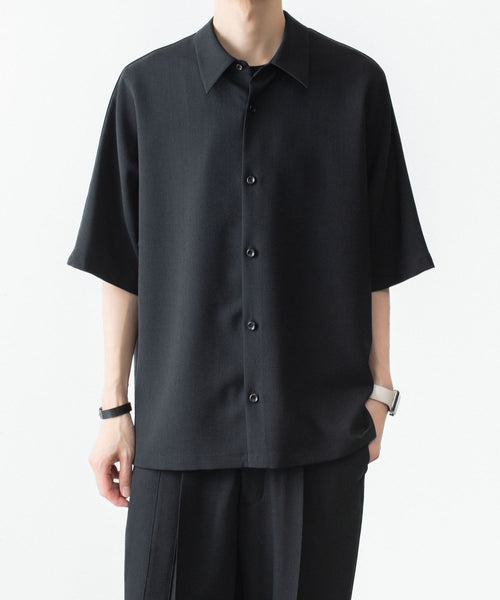 ATTACHMENT-アタッチメントのPE LIGHT TROPICAL DOLMAN SLEEVE REGULAR COLLAR SHIRT S/SのBLACK