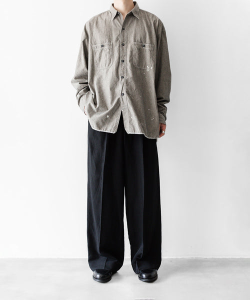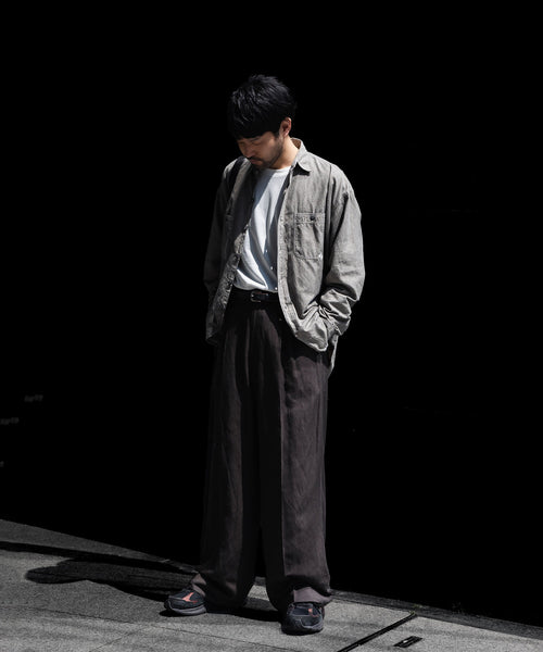 さらに見返し裏には耳使い仕様を採用しヴィンテージの ワークウェアらしさを強調。裾は当時の個体にあったロック始末でラフな表情を演出。