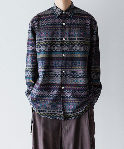 KANEMASA PHIL.のスタンダードシャツに 某英国ブランドの定番ニット柄をモチーフに作成したオリジナルプリントシャツ。