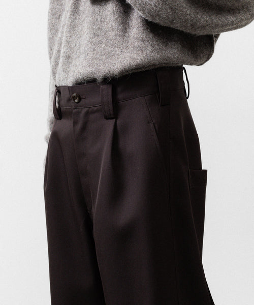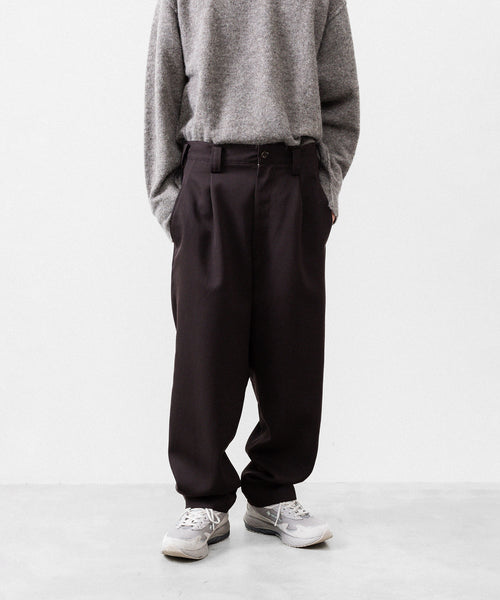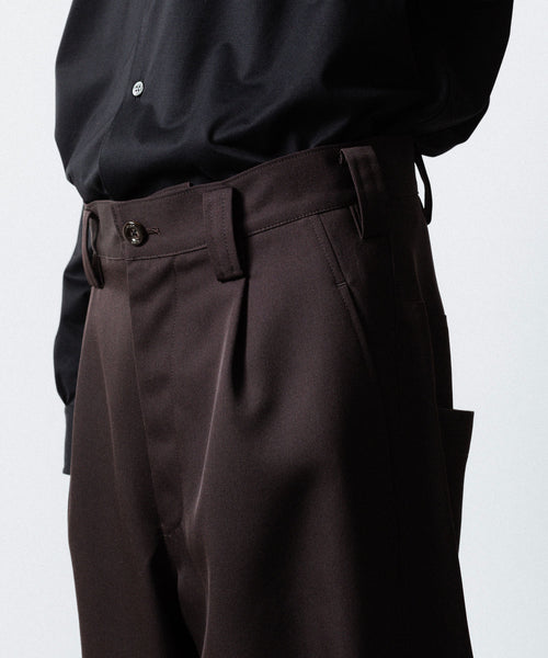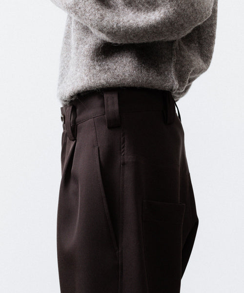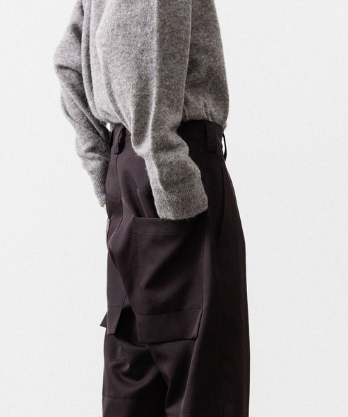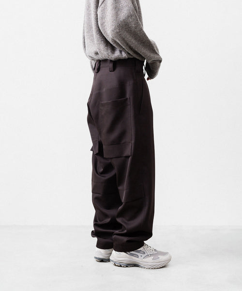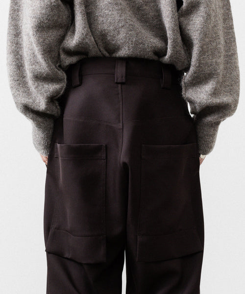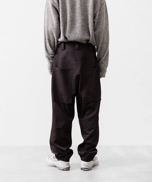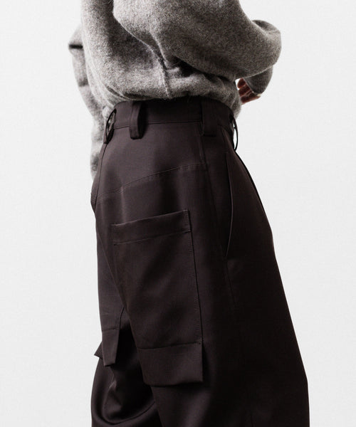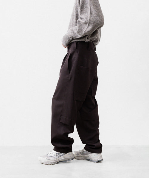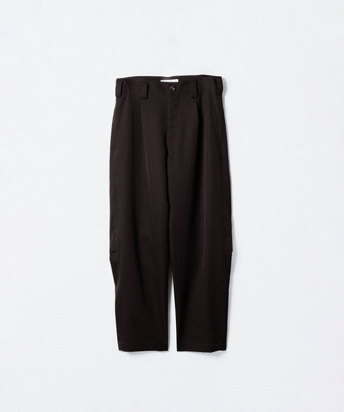 リラックス感と洗練された印象を与えるテーパードシルエット。ワークパンツをモチーフとしたデザインでアウトポケットとステッチワークを施しシンプルな中にも存在感のあるデザインに仕上げています。