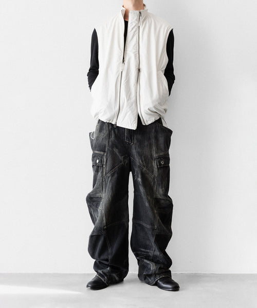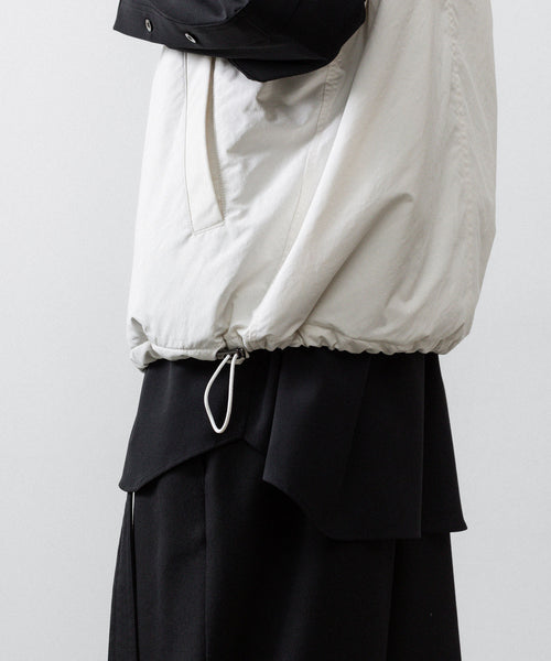 2つのZIPに挟まれた部分を取り外して着用することも可能でサイズ感の調整が可能。