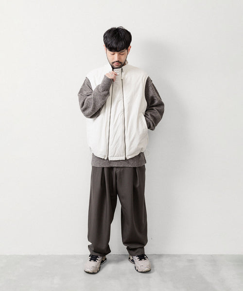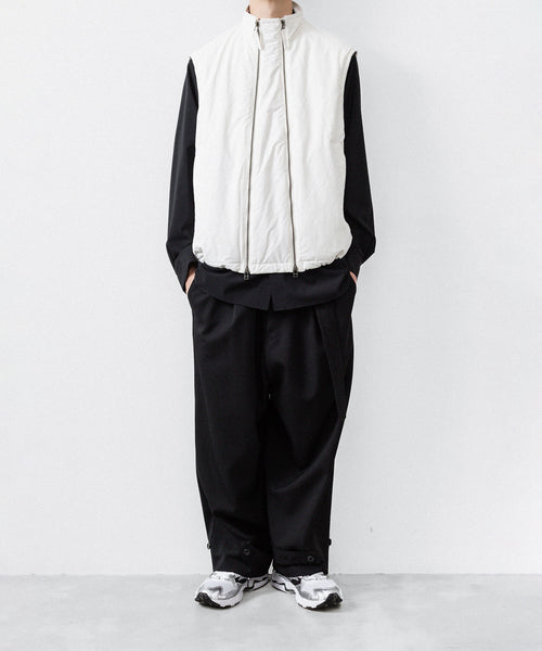 フロントの2列に配されたダブルZIPが印象的なベスト。
