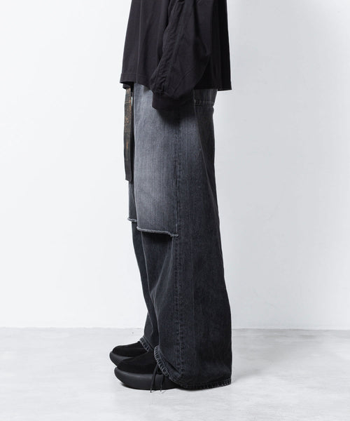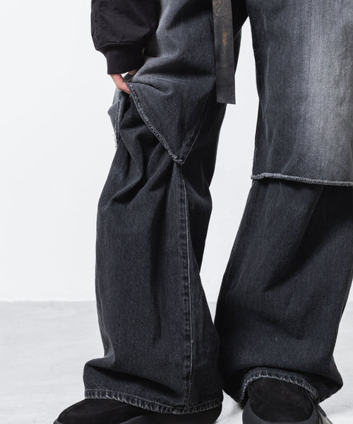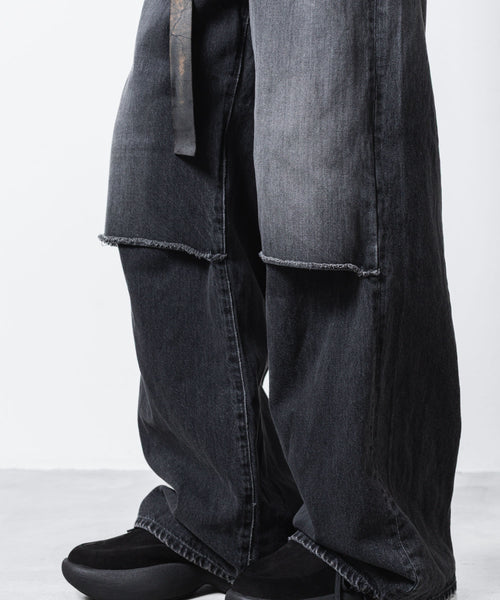VEIN-ヴェインの11OZ DENIM CUT OFF BAGGY TROUSERSのBLACK