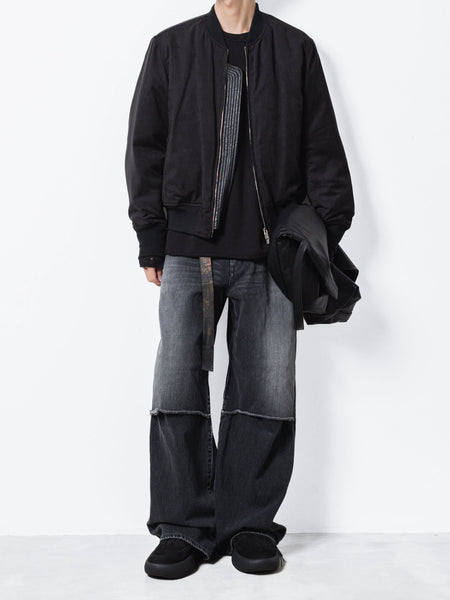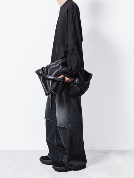 【 VEIN 】11OZ DENIM CUT OFF BAGGY TROUSERS - BLACK
