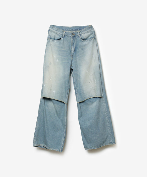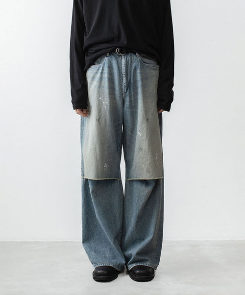 【 VEIN 】11OZ DENIM CUT OFF BAGGY JEANS - L.NAVY