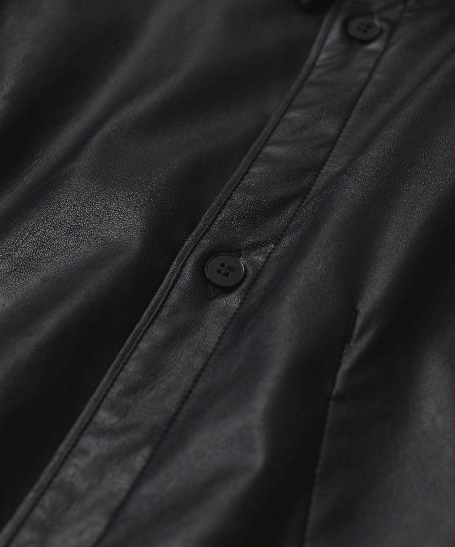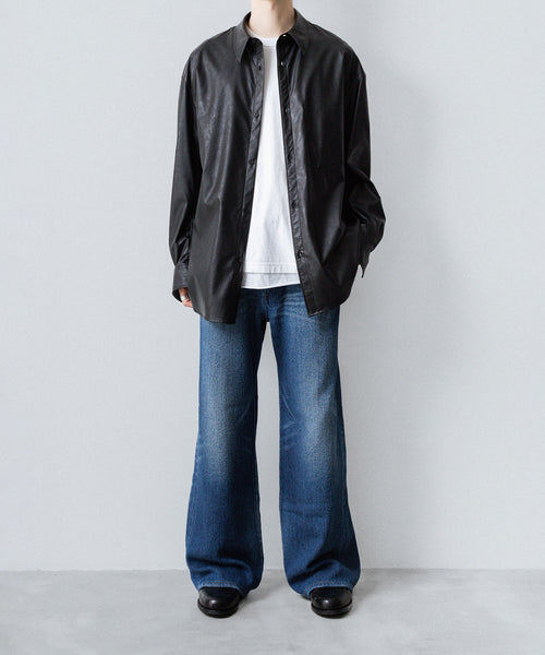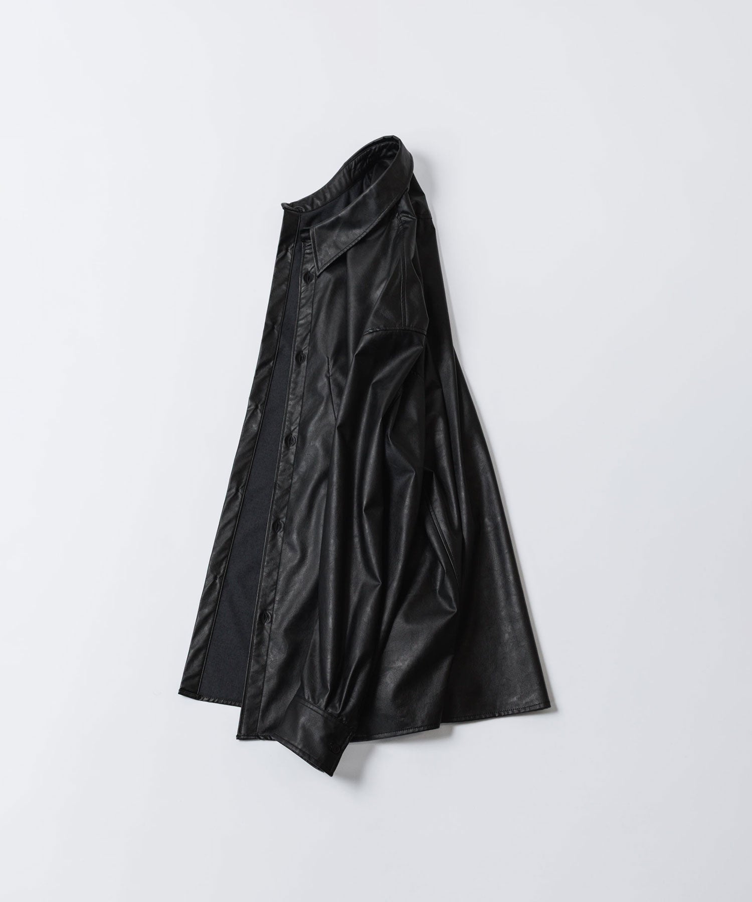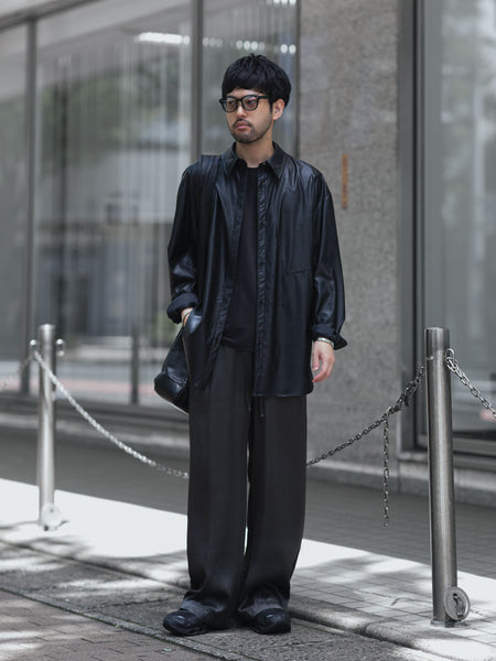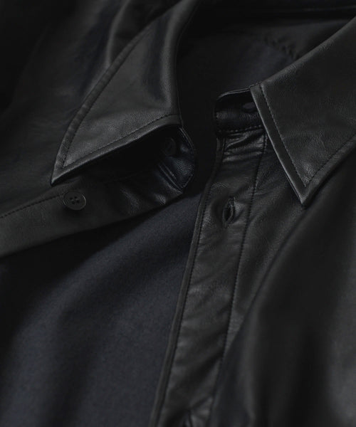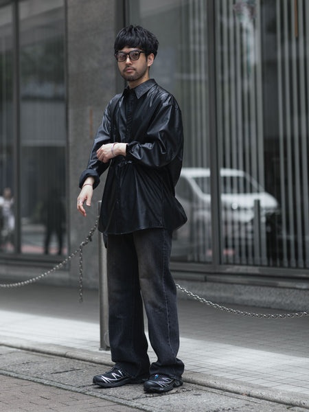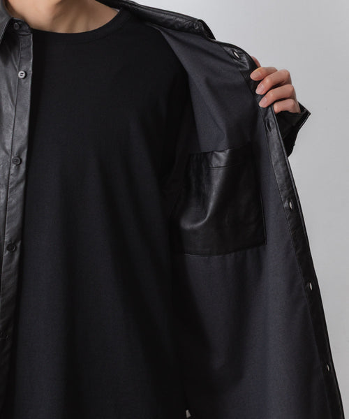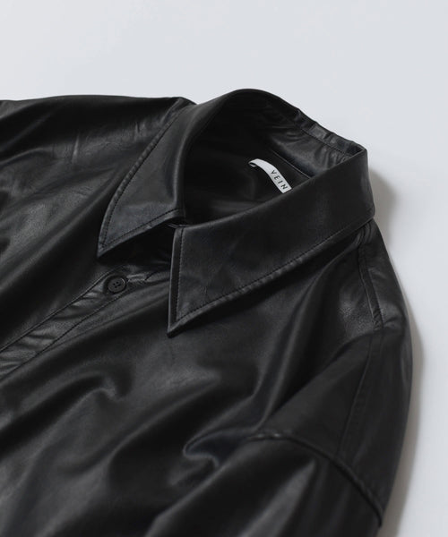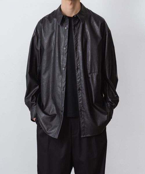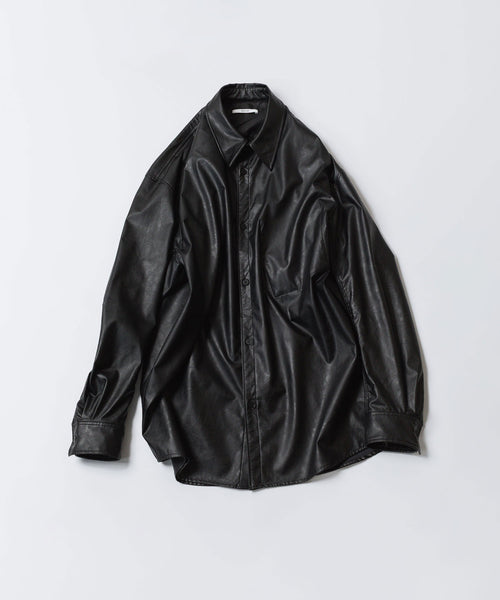 VEIN-ヴェインのSYNTHETIC LEATHER L/S SHIRTのBLACK