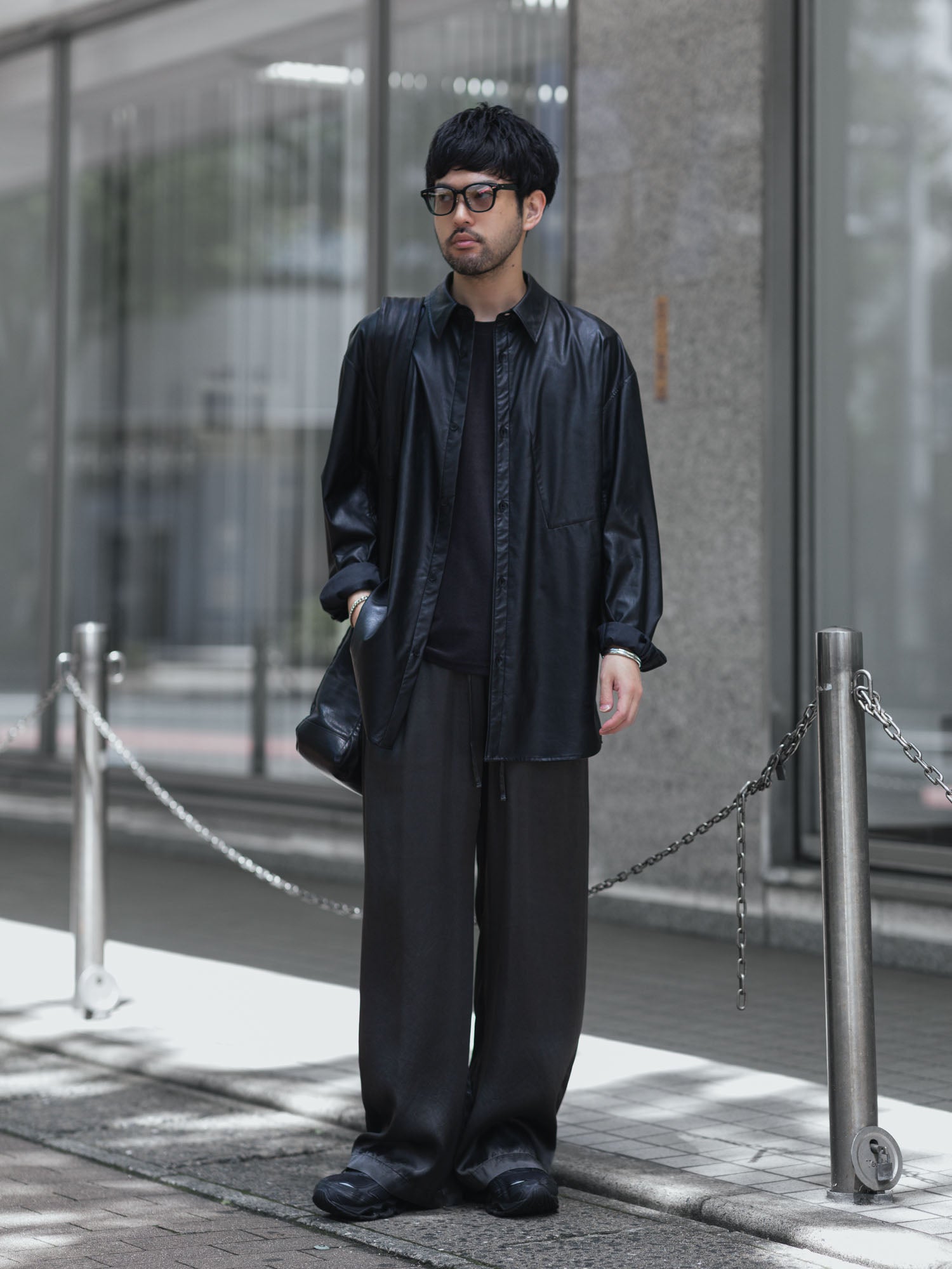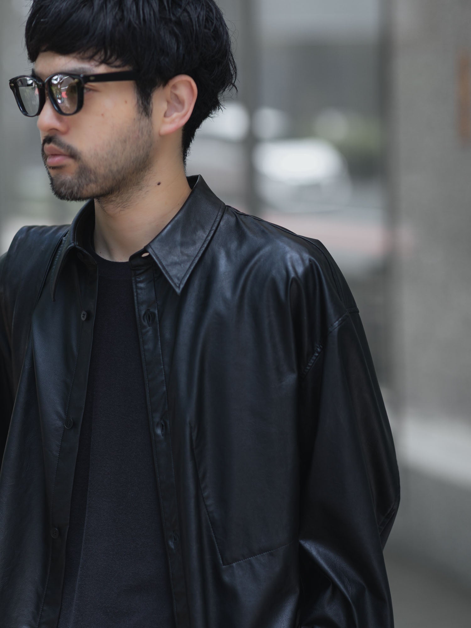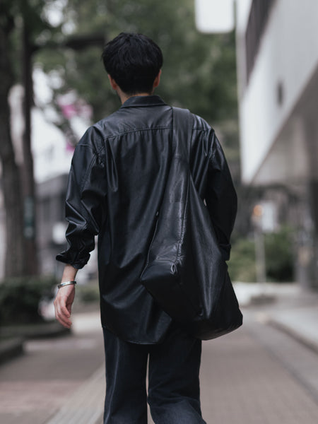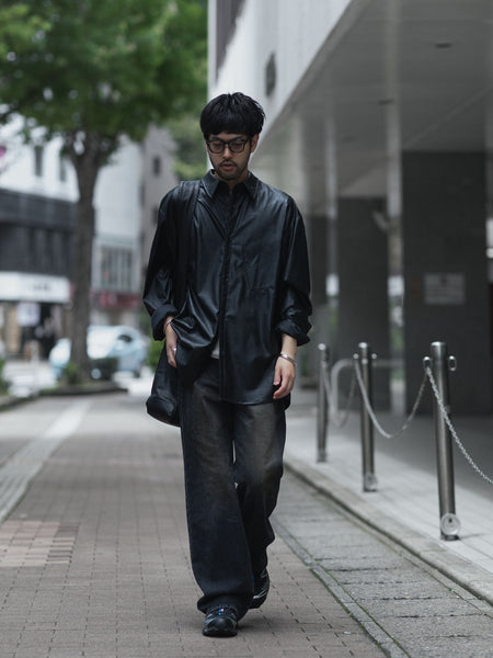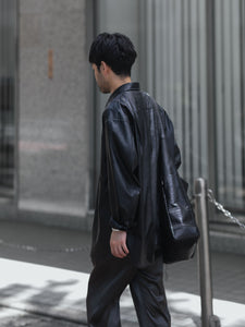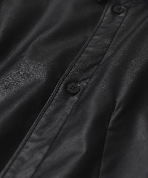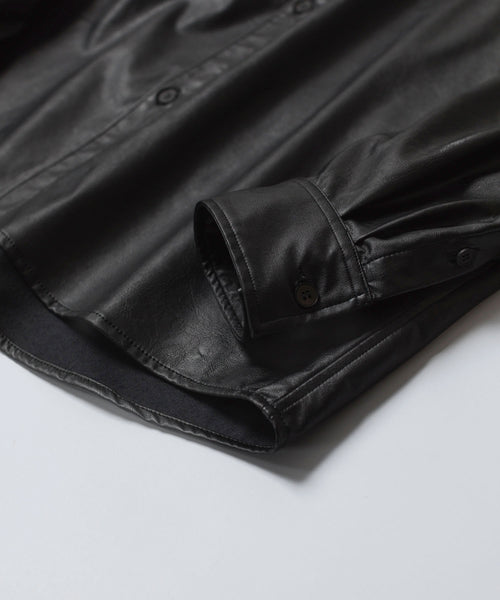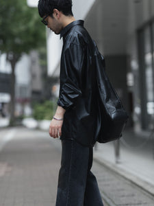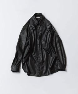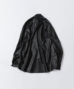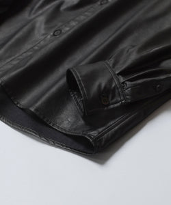 【 VEIN 】SYNTHETIC LEATHER L/S SHIRT - BLACK