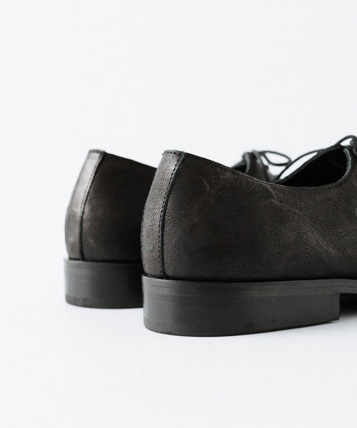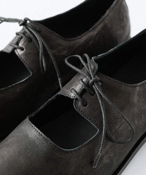 数学的な根拠に基づき計算され、歴史の背景からインスピレーションを受け、それらを融合させて製作されたデザインが特徴。数学者の彼らは独学によって新たな視点に基づいたデザインを基に製作。歴史あるオランダの靴を再構築し、ミニマムで現代的なデザインに落とし込んだハンドメイドのフットウエア。