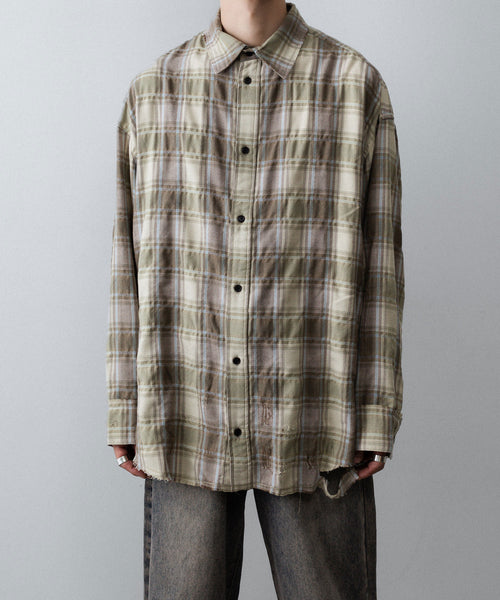 CODA -コーダのYELLOW BROWN CHECKED WASHED THRASHED STRUCTURED SHIRTのYELLOW BROWN CHECK