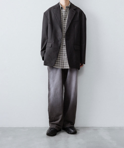 ヴィンテージウォッシュとダメージ加工を施すことで、長年着古したような風合いに仕上げています。