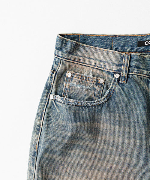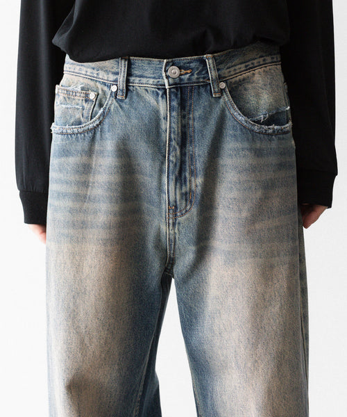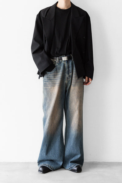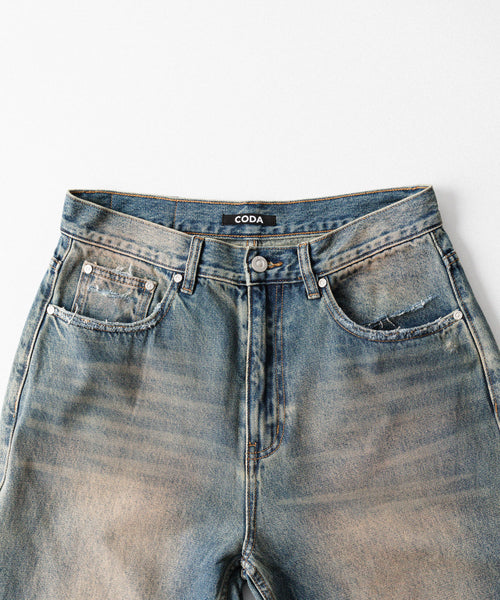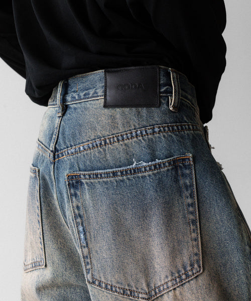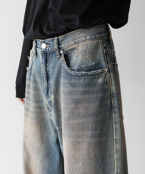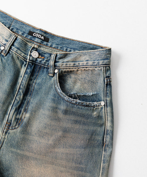 CODA -コーダのFADED DIRTY INDIGO WASHED BREAK CUT WIDE FLARED JEANSのFADED DIRTY INDIGO