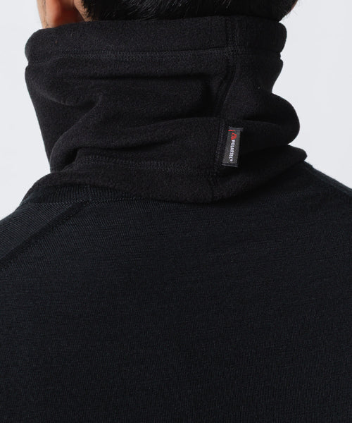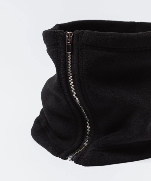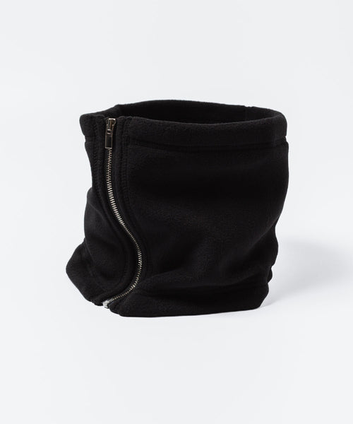 フーディーやハイネックブルゾンを着用時はマフラーやストールを付けにくく感じることが多いと思いますが、そのようなアイテムにも馴染むネックウォーマー。