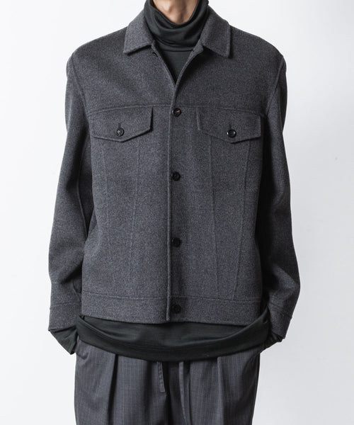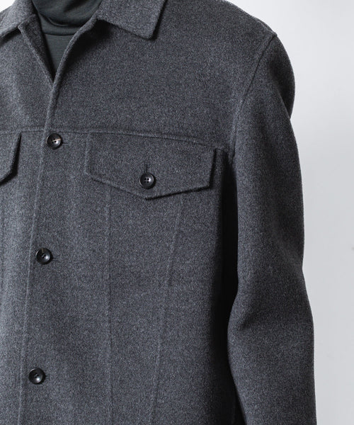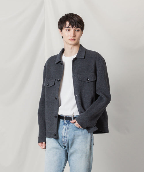 ワークを起源とするトラッカージャケットを上質な素材でつくることで、ラグジュアリーで都会的な雰囲気に仕上げた本作。