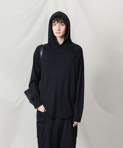 ATTACHMENT-アタッチメントの1/60 WOOL SMOOTH HOODED PULLOVERのBLACK