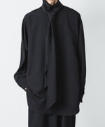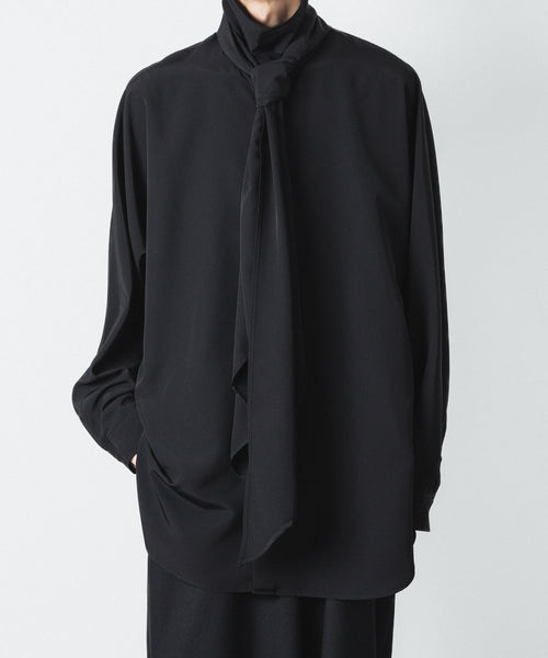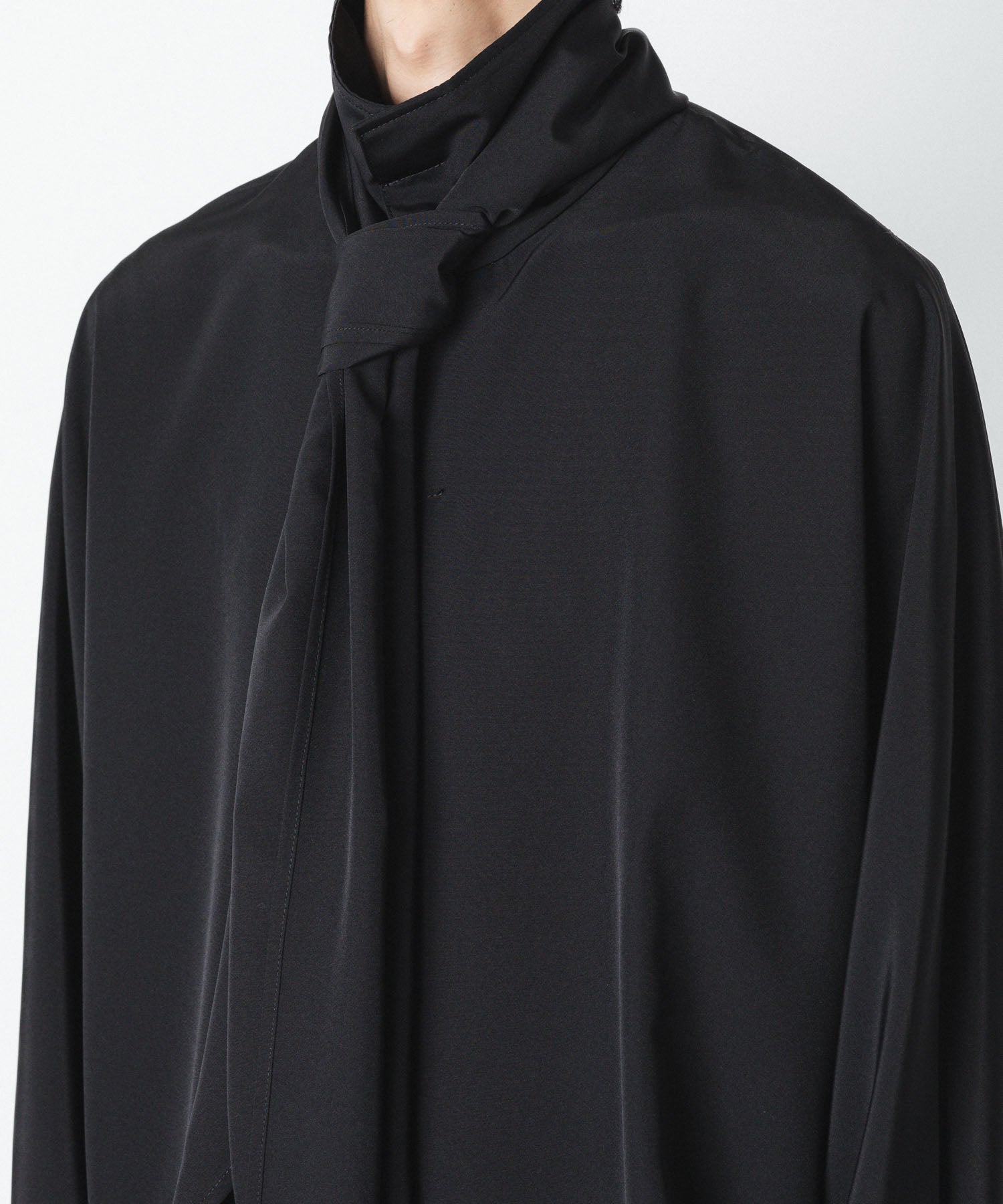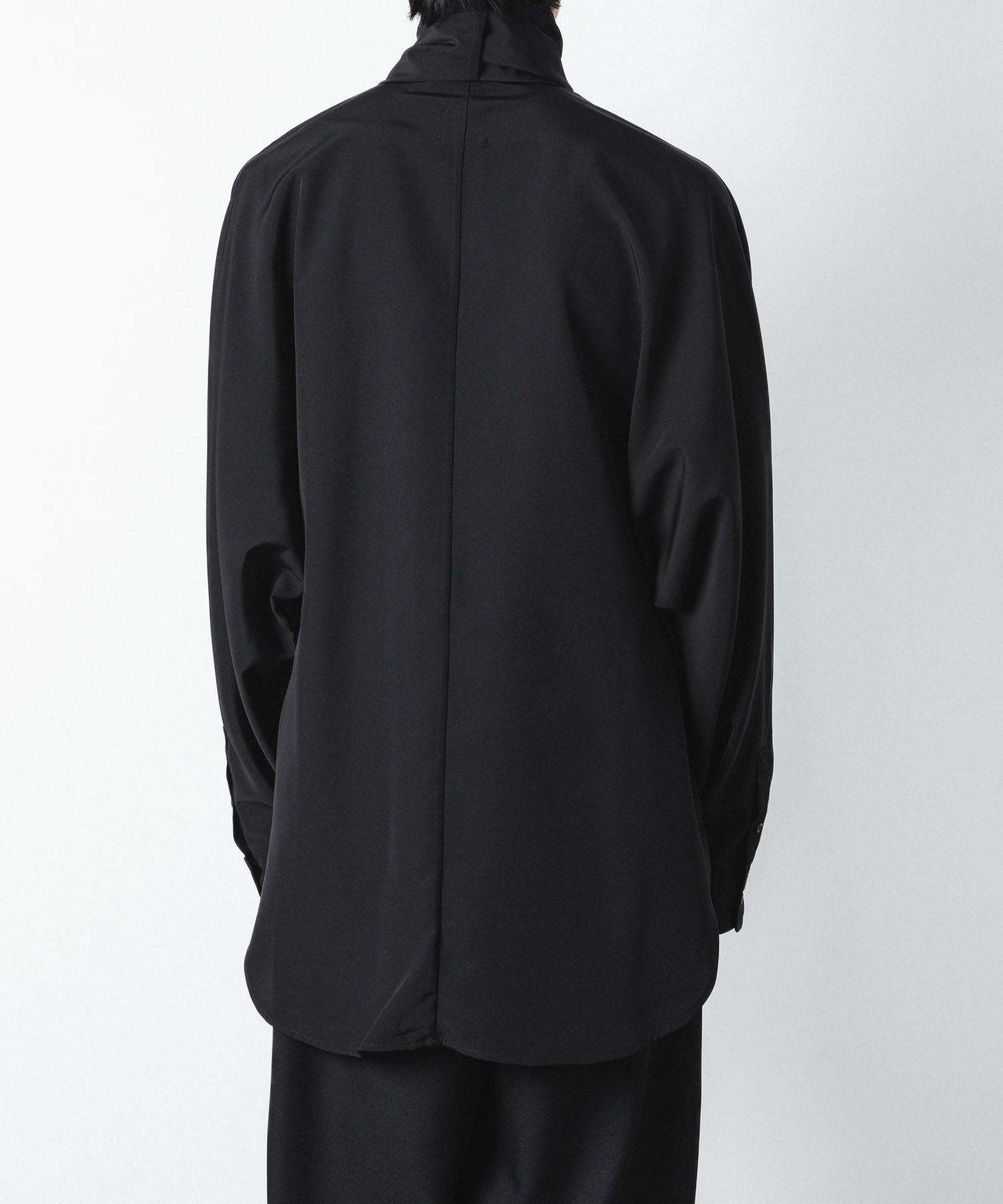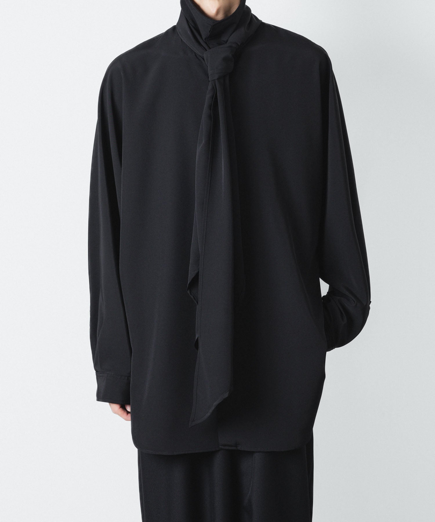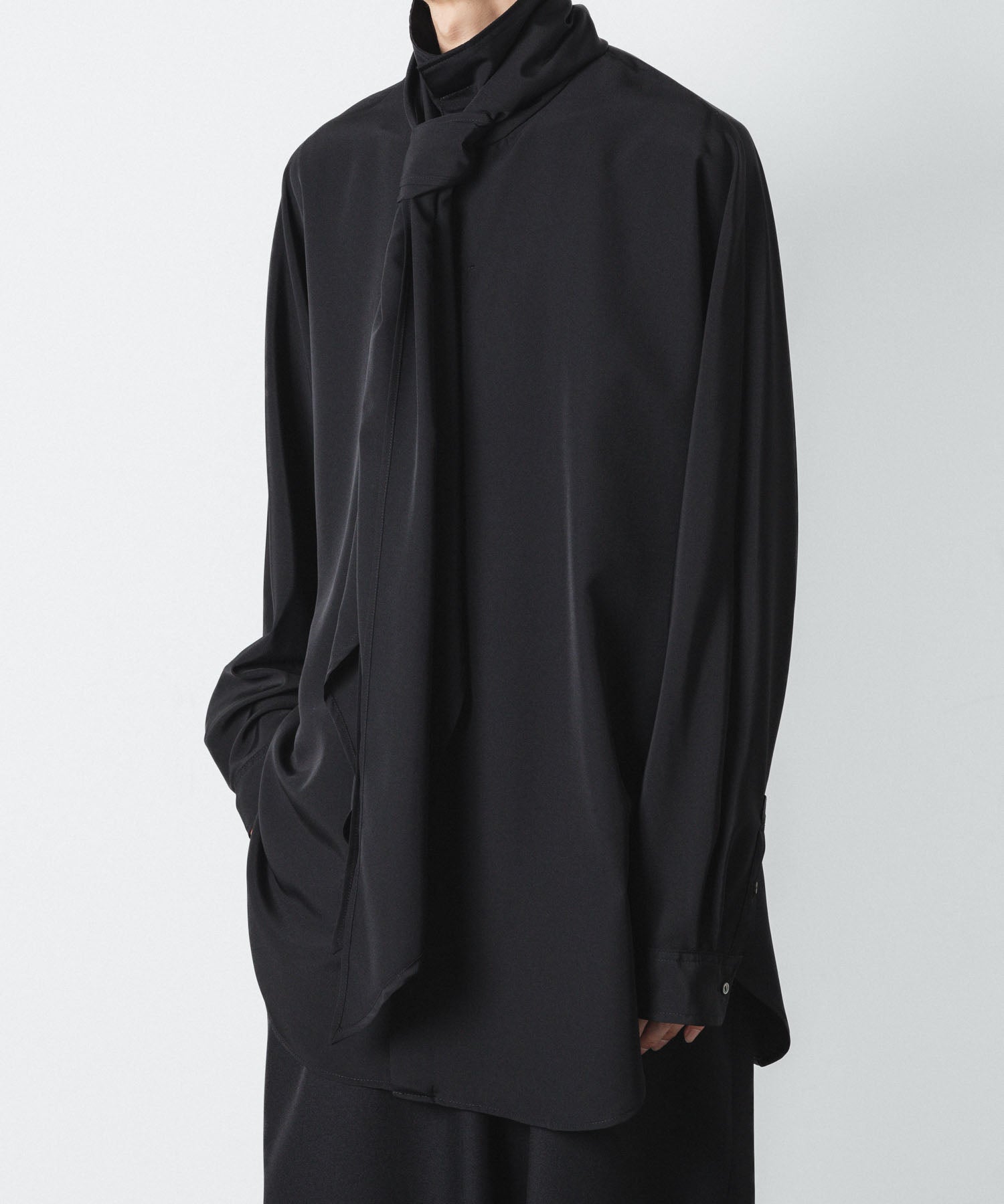 立体裁断で製作されたオーバーサイズのスカーフ付きシャツです。