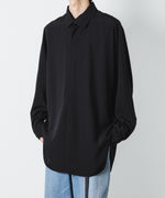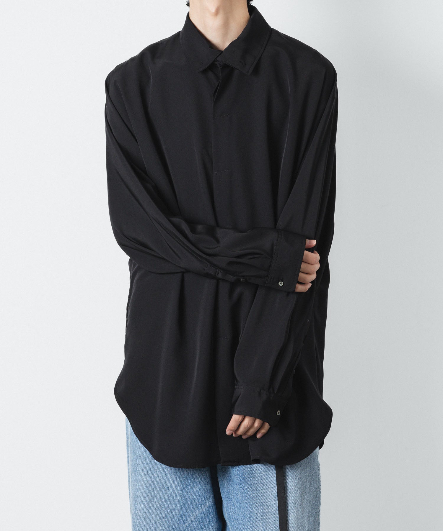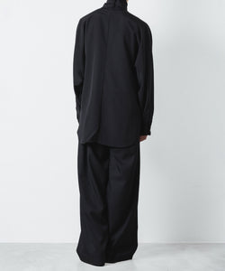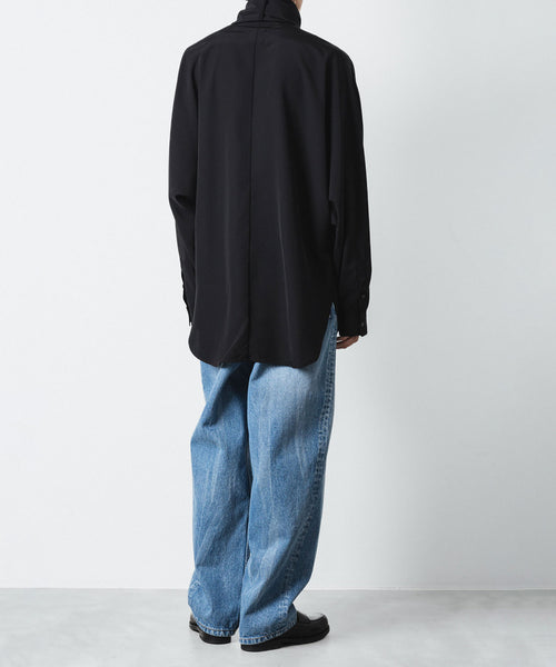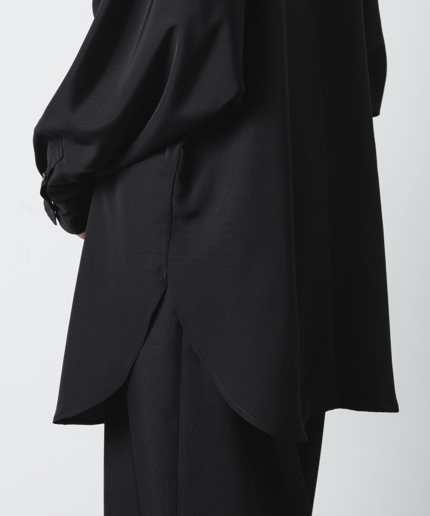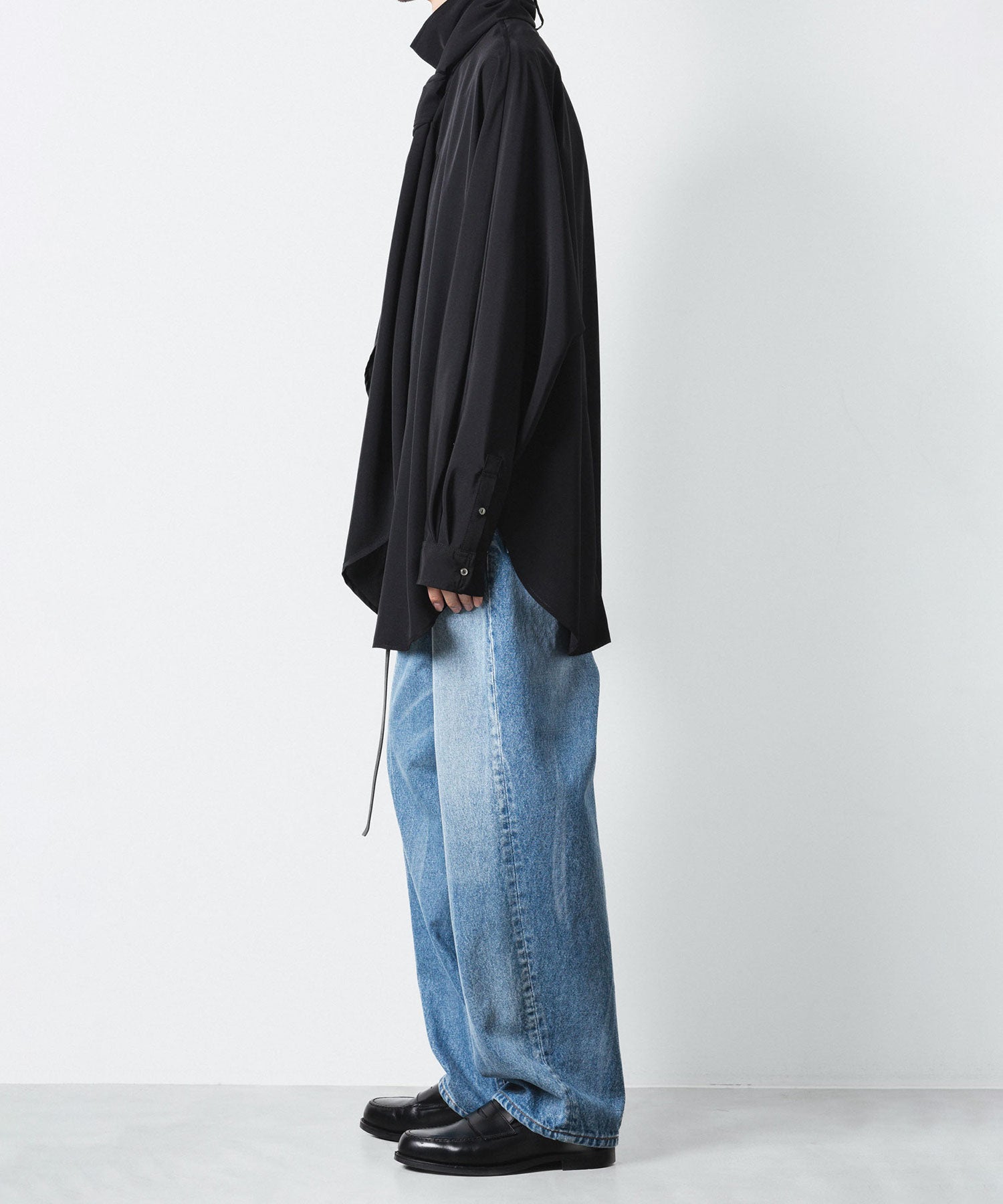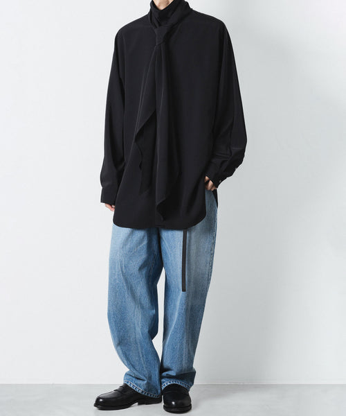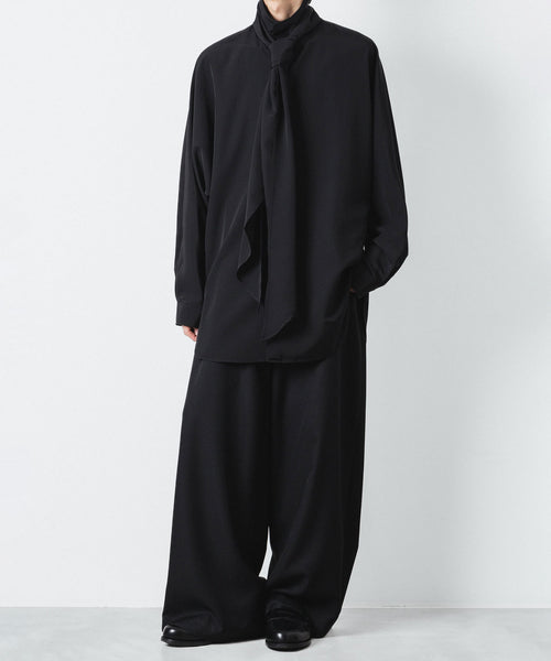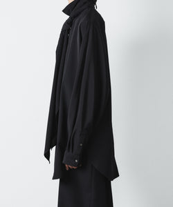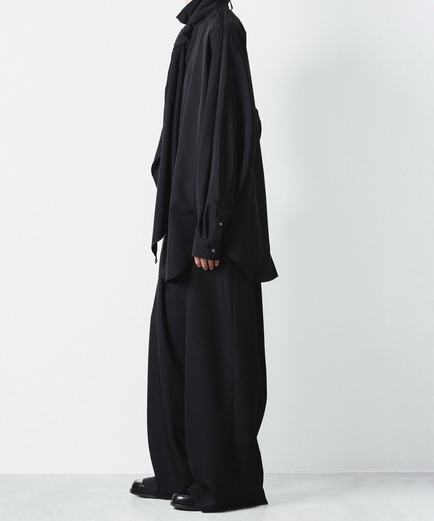 立体裁断で製作されたオーバーサイズのスカーフ付きシャツです。