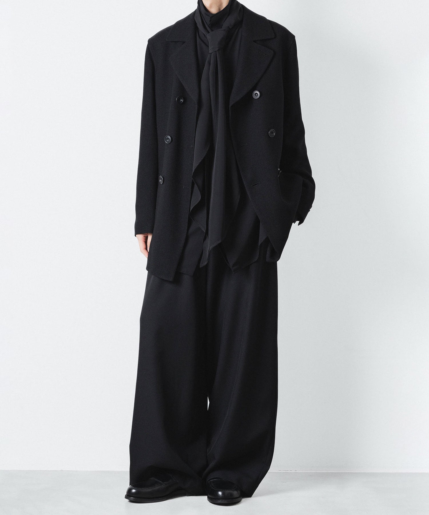 贅沢に生地を使い、全体にゆったりとした設計ながら、縦方向へ落ちる美しいシルエットが特徴です。