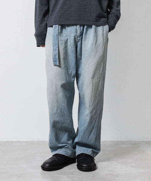 ATTACHMENT-アタッチメントの11oz DENIM 1TUCK BELTED PANTSのL.NAVY