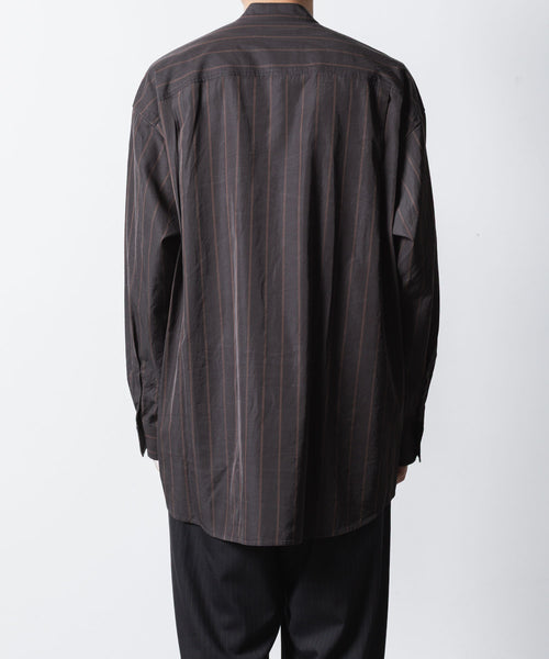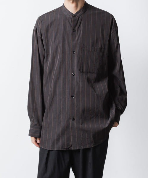 【 ATTACHMENT 】CU/CO STRIPE TWILL BANDCOLLAR L/S SHIRT - S.GRAY