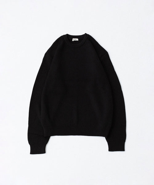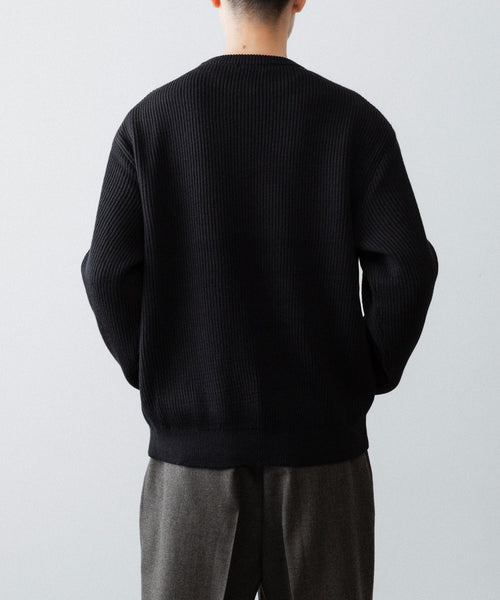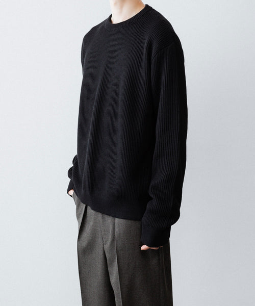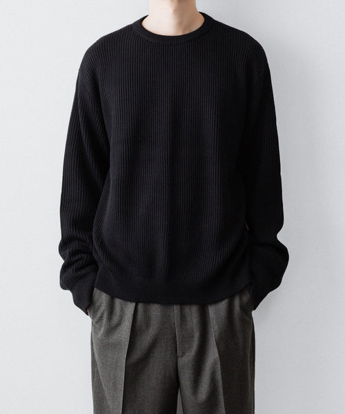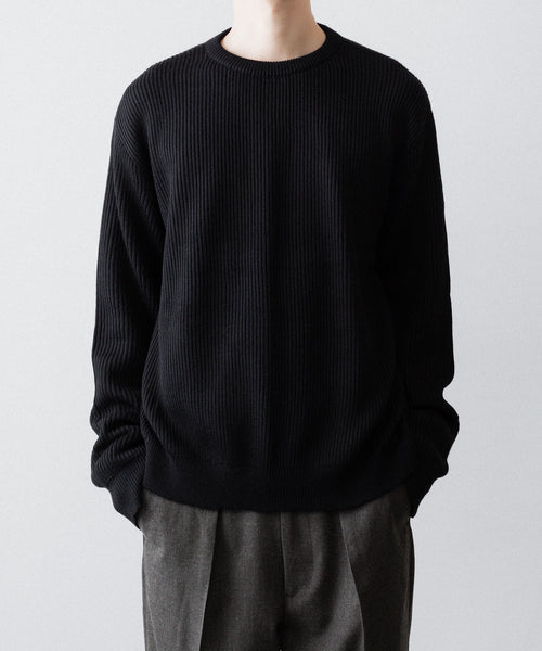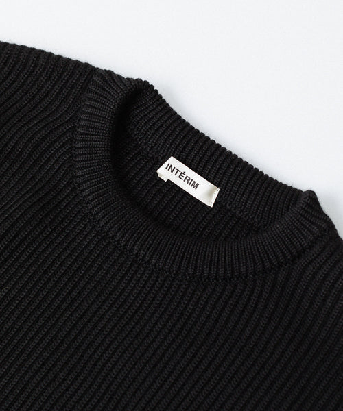 INTÉRIM - インテリムのWOOL SILK CASHMERE DEAD STOCK YARN DOUBLE RIB CREW SWEATERのBLACK