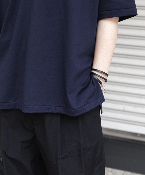 肩幅と身幅をたっぷりと広くゆとりを持たせたデザインで袖もあえて⻑めに設定したリラックス感たっぷりのハイパービッグポロシャツ。オーバーサイズでありながらサイドに深めのスリットを大胆に入れることで動きやすさとスタイリッシュなシルエットの両立を実現しました。 また厳選された上質な生地をふんだんに使用するため肌触りの良さや着心地の快適さはもちろん、それぞれ の生地が持つ独自の質感や特⻑を贅沢に感じられる一 着です。
