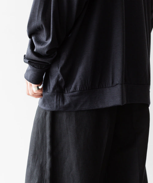 裾と袖口を切り替えて絞ることでクラシックなイギリスのニットポロのような独特のたまり感を表現しました。