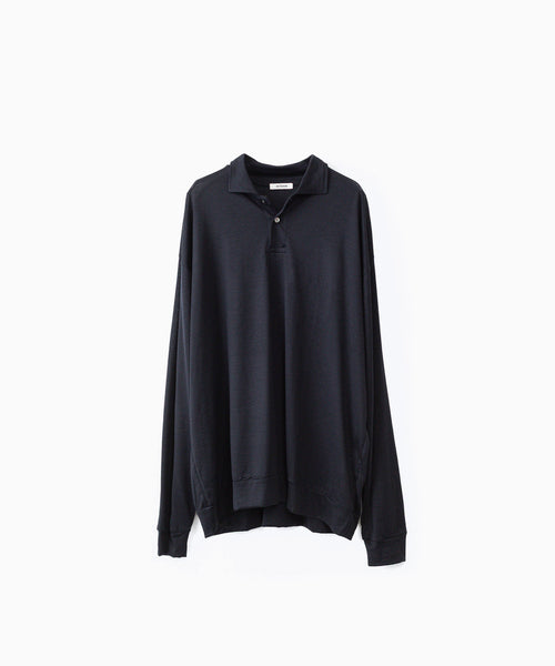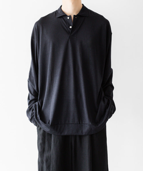 INTÉRIM - インテリムのSILK COTTON JERSEY DEADSTOCK FABRIC HYPER BIG LONG POLO SHIRTのVULCAN