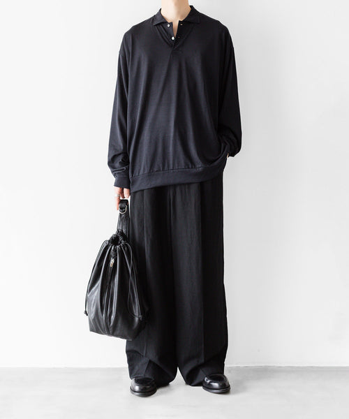肩幅と身幅をたっぷりと広くゆとりを持たせたデザインでリラックス感たっぷりの⻑袖ハイパービッグロングポロシャツ。