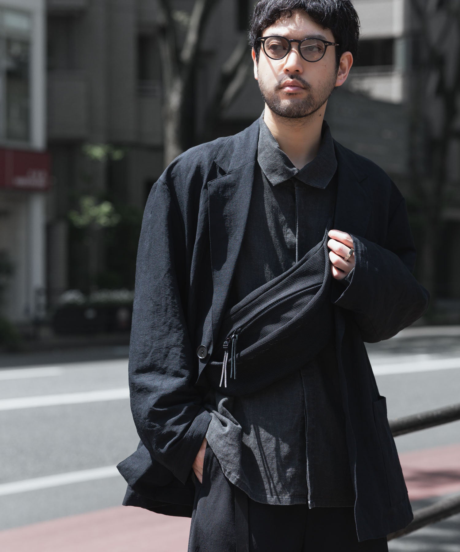 500mlのペットボトルやコンパクトカメラが収納できるサイズ感ですが、着用時に大きすぎないバランス感に仕上げています。