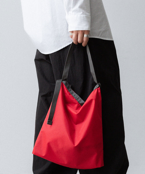 2m超えのひとつなぎのテープが印象的なショルダーバッグ。