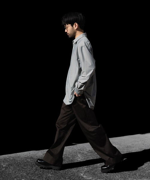 程よくゆとりをもたせつつ、裾に向かって綺麗に落ちる縦長シルエット。
