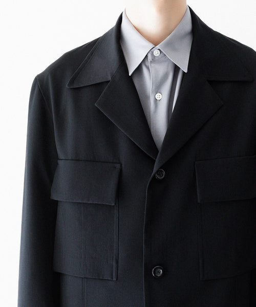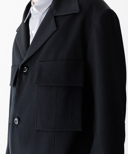 特徴的なアルスターカラーがクラシックな雰囲気を漂わせ、左右前面に配したフラップ付きアウトポケットが実用性とデザイン性を兼ね備えています。