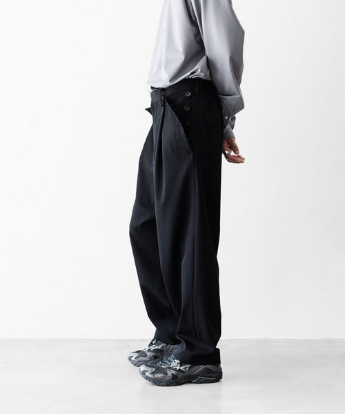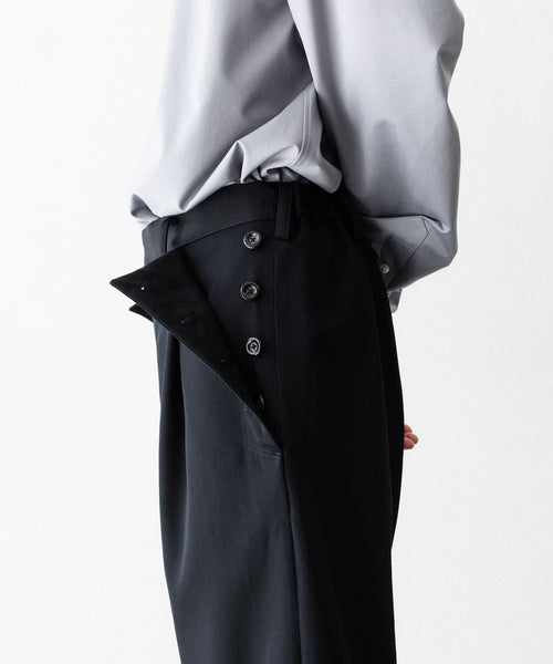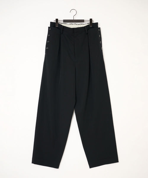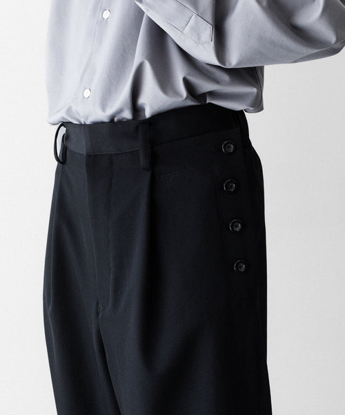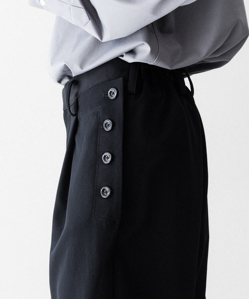 セーラーパンツをデザインソースに、サイドに配した釦ディテールが特徴です。