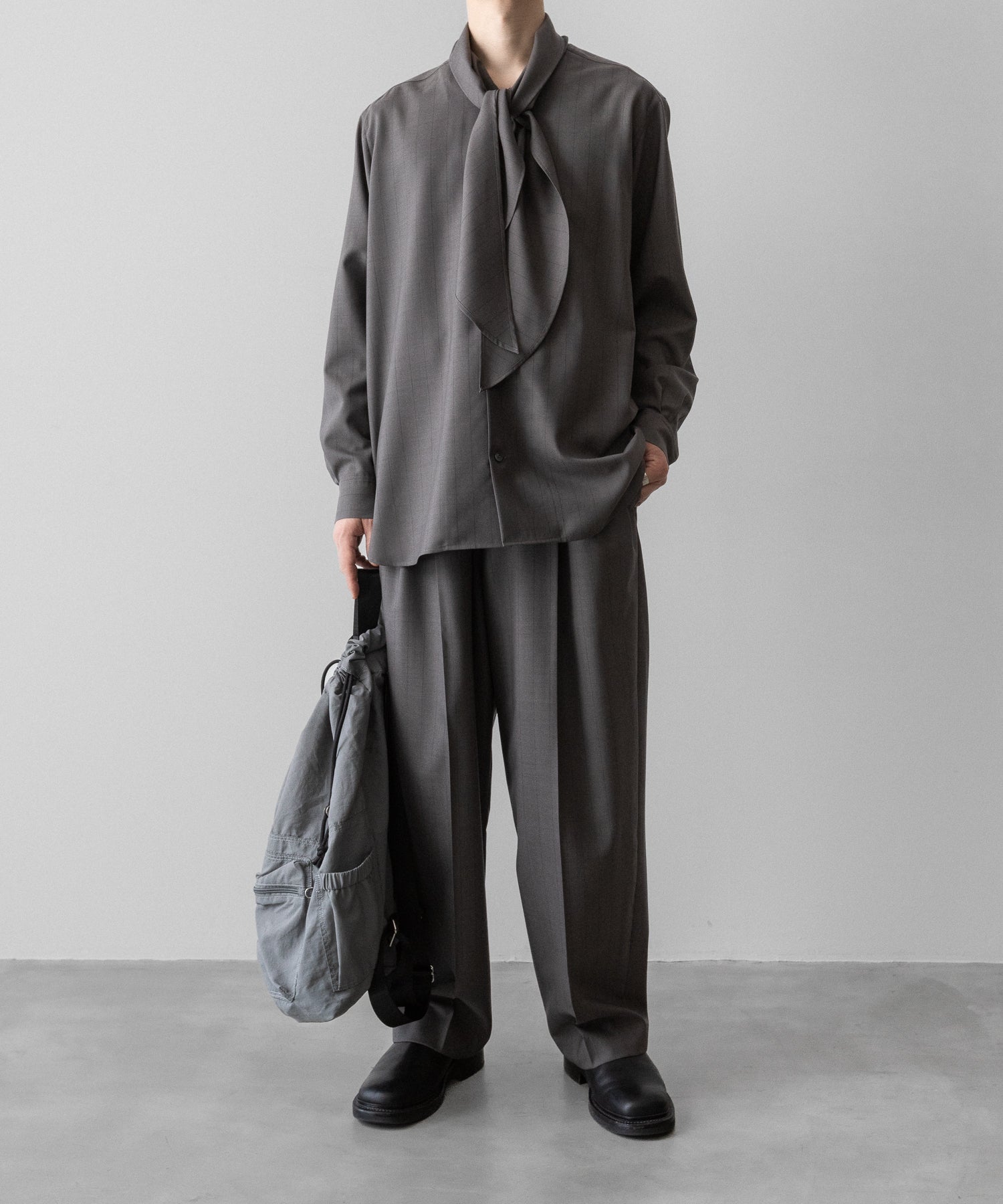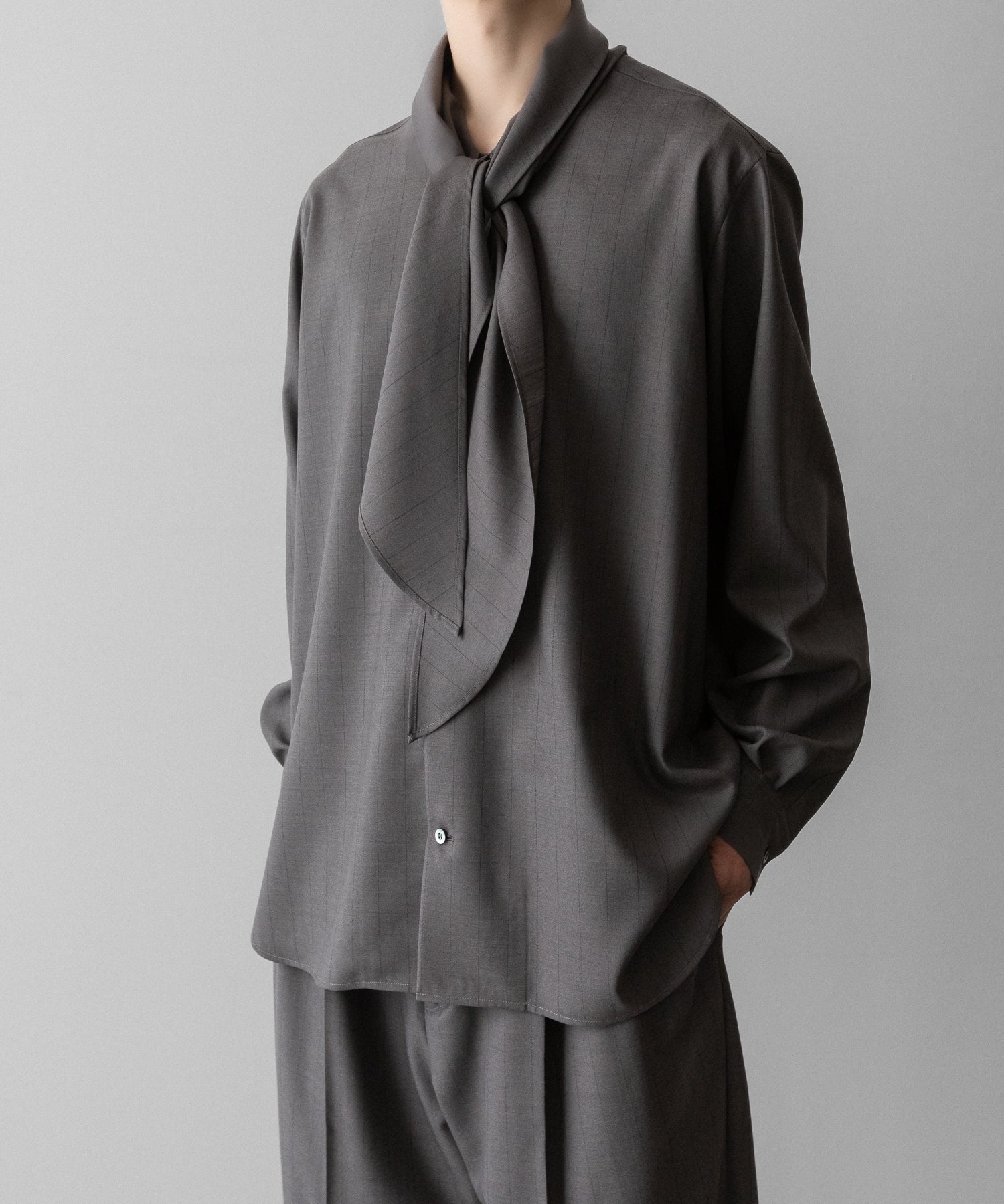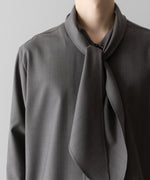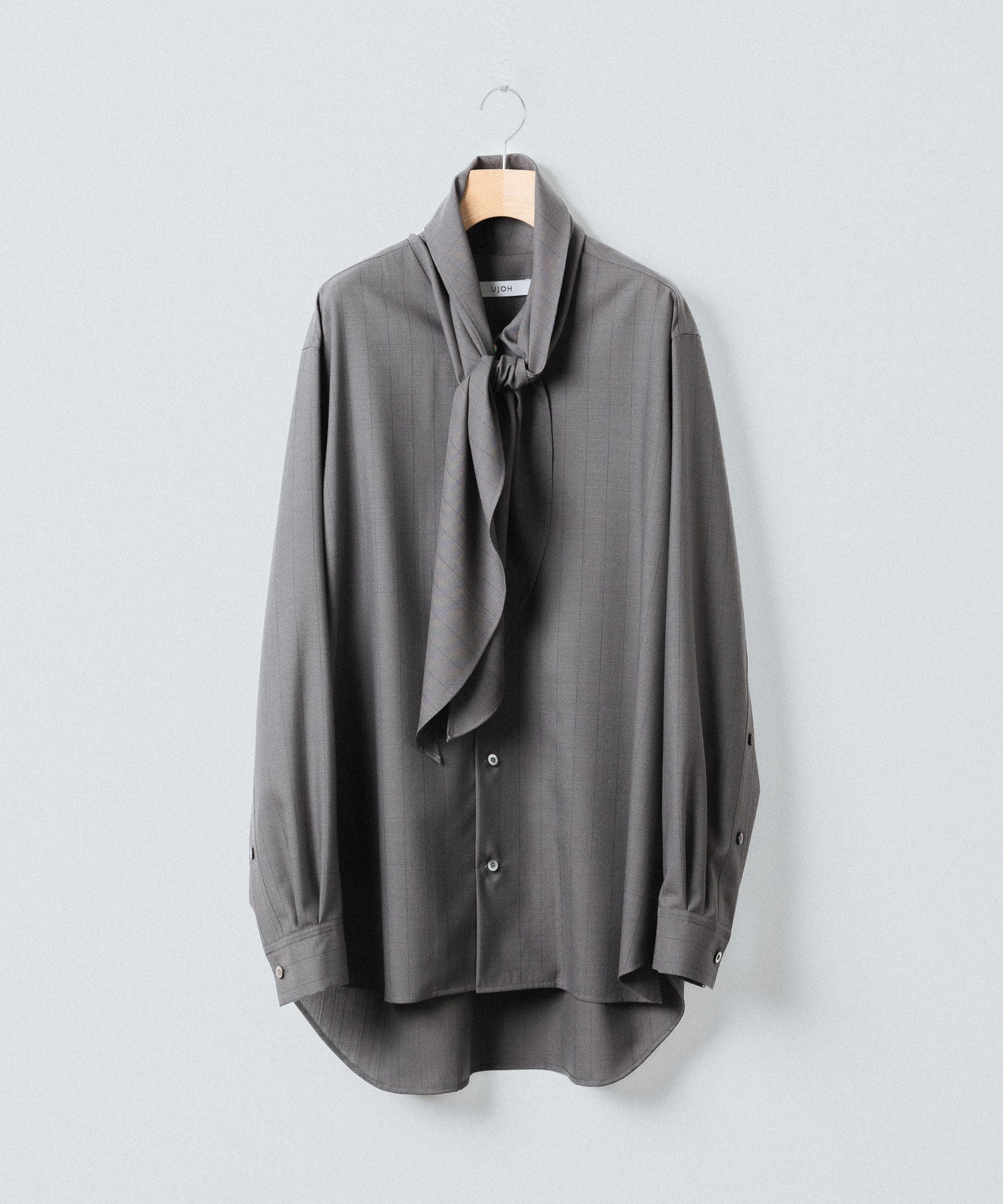 セーラーカラーのようなスカーフカラーがエレガントな印象のシャツです。首元を少し深めに設定し、スカーフを結んだ際にナチュラルさや柔らかい雰囲気のあるスタイルに仕上がっています。