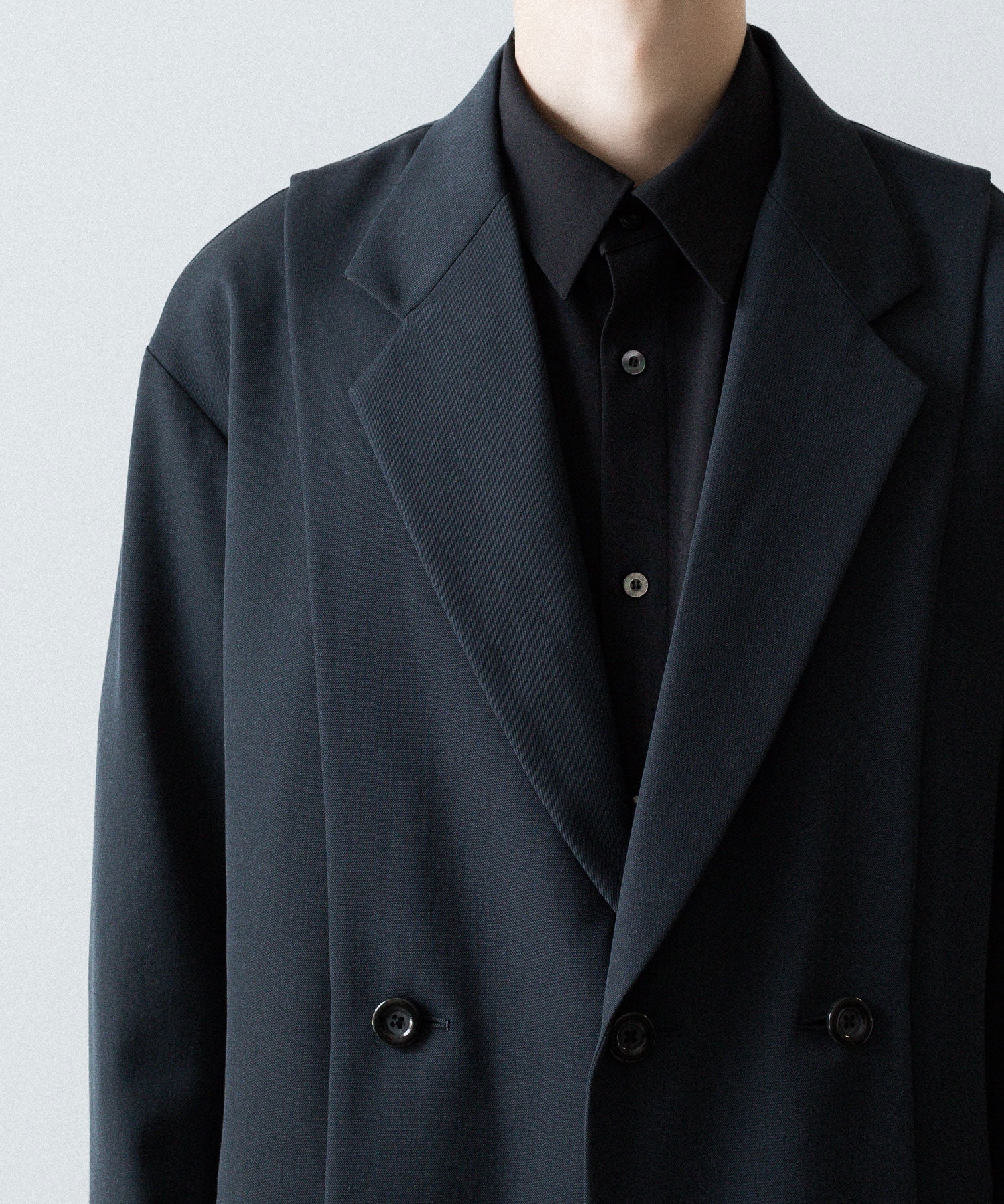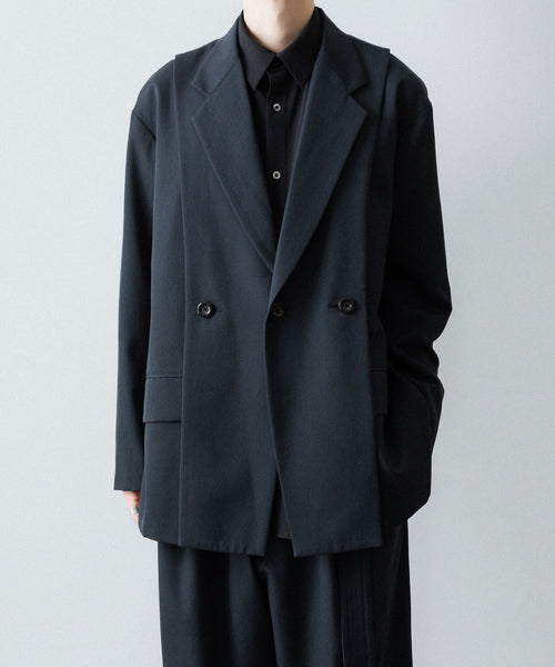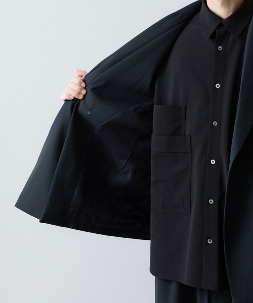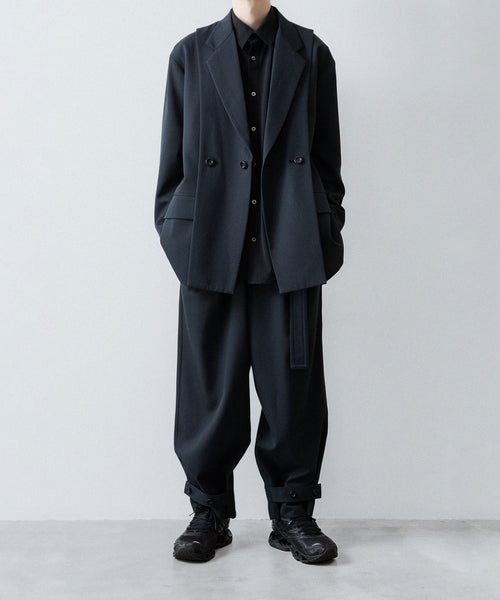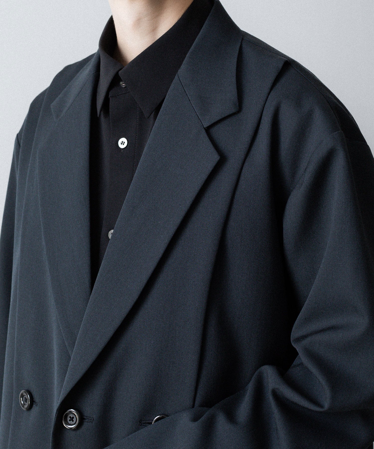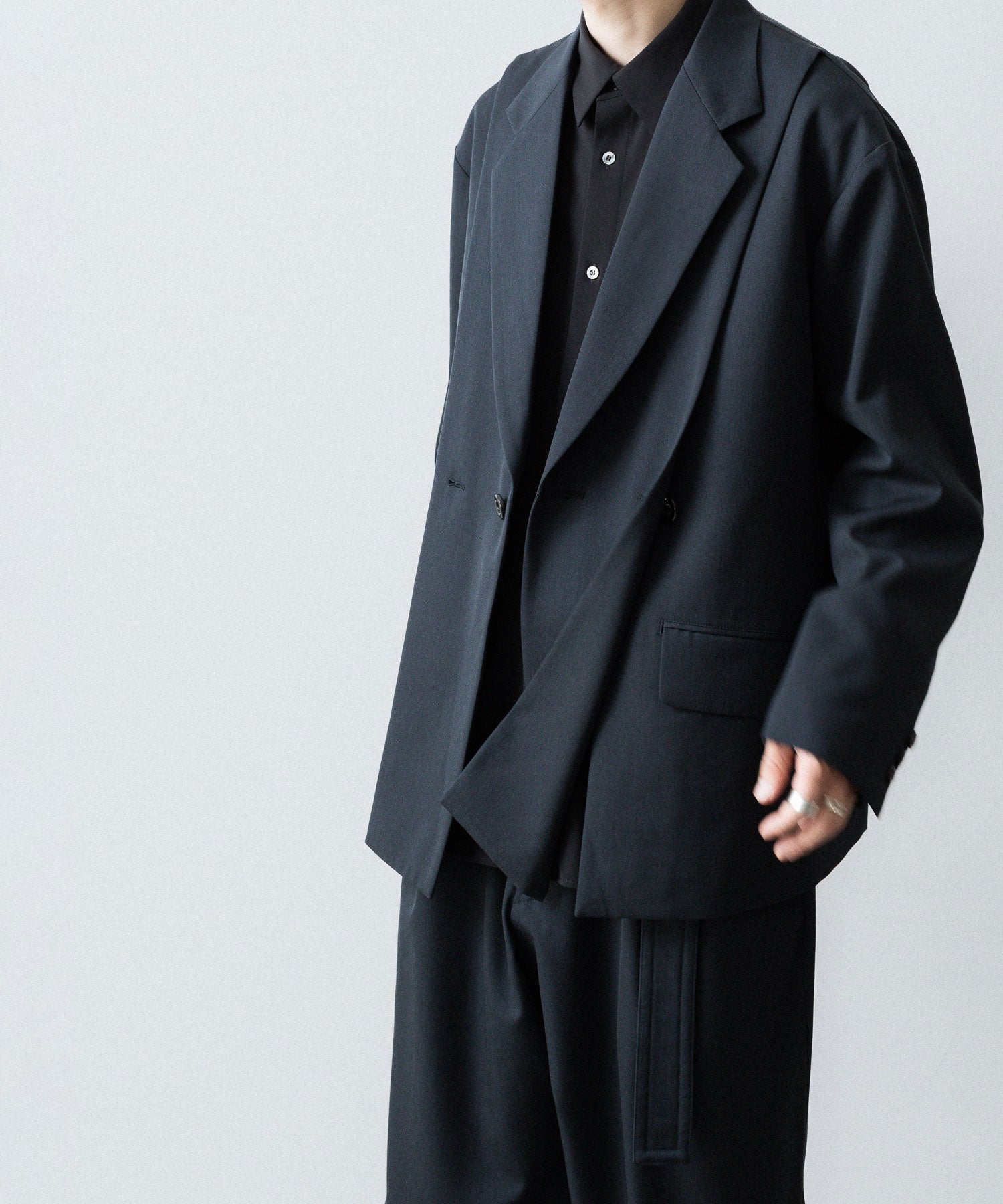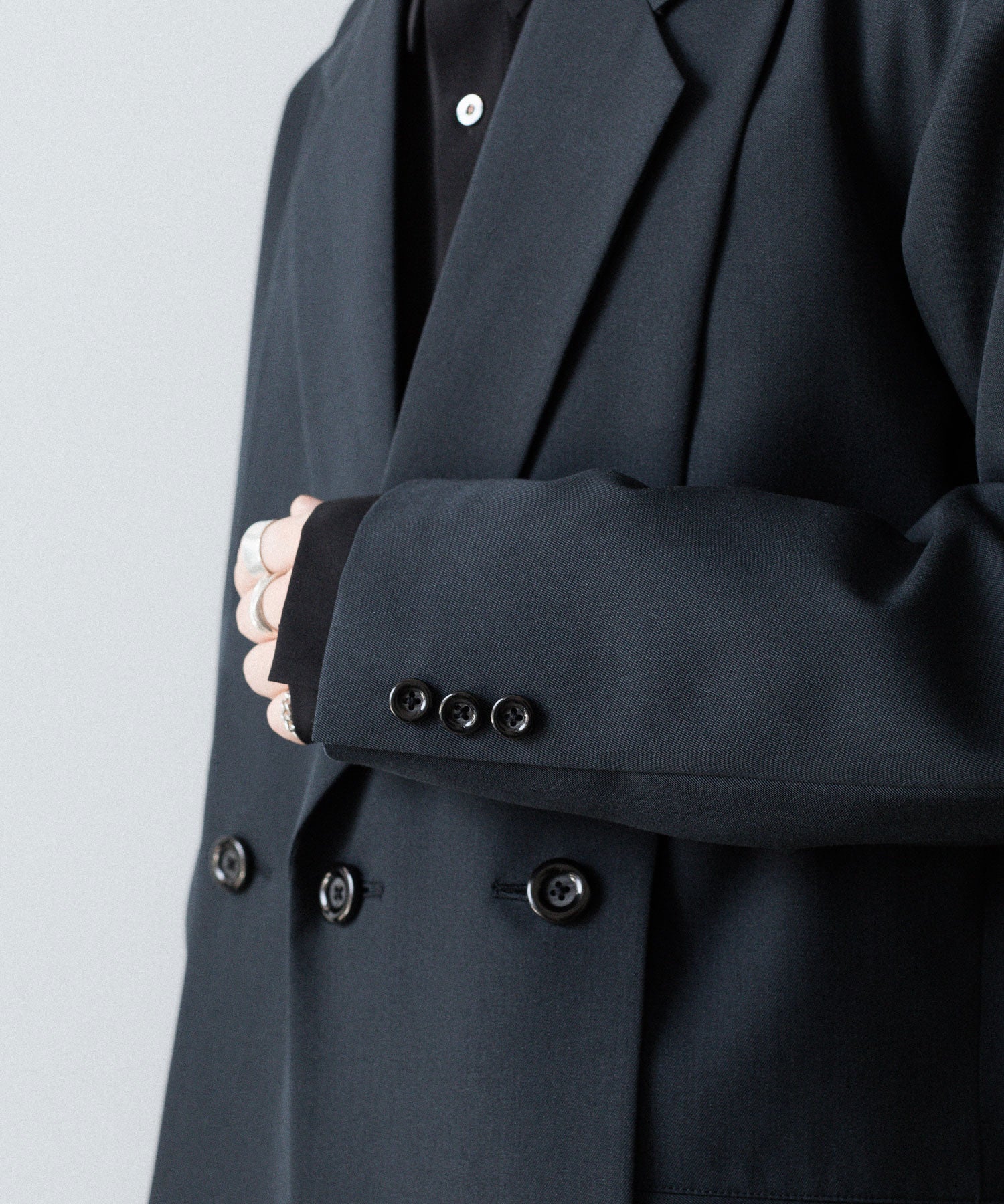 フロントは釦で留めたスリットを開けて着たり、スリットに袖を通してベストのように着たりと、UJOHらしい遊びの効いた着方が楽しめる1着です。
