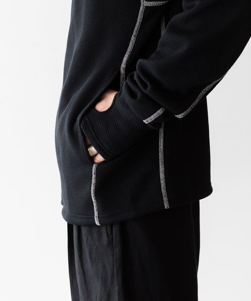 袖口の開きに親指または時計を嵌め込む事が出来る仕様。