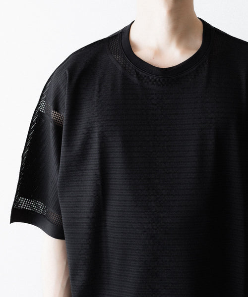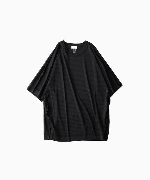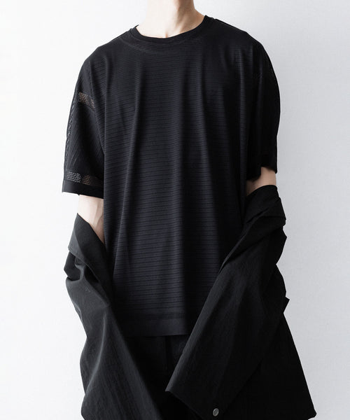 特殊な経編みジャカード機を使用し、衿以外は無縫製で仕上げたTシャツです。