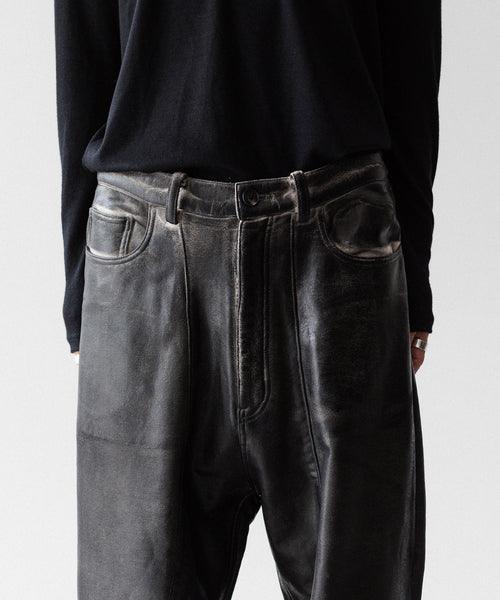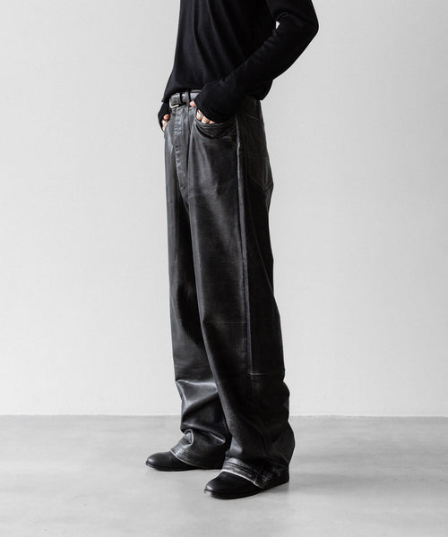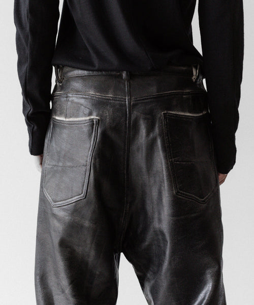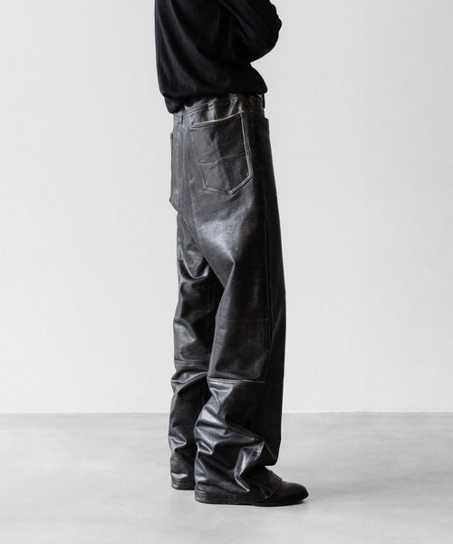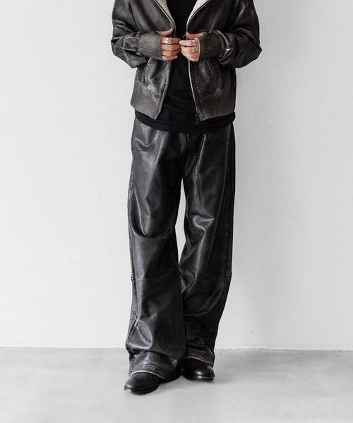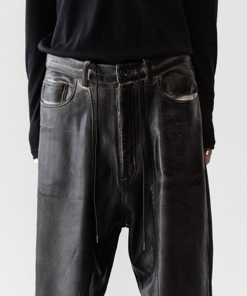 内側にウエストコードもあるので、しっかりとしたレザーパンツに見えつつもリラックスした着用が可能です。