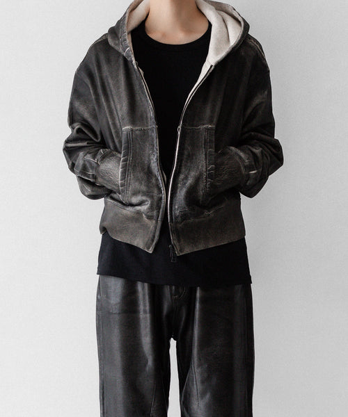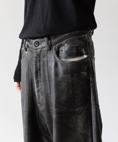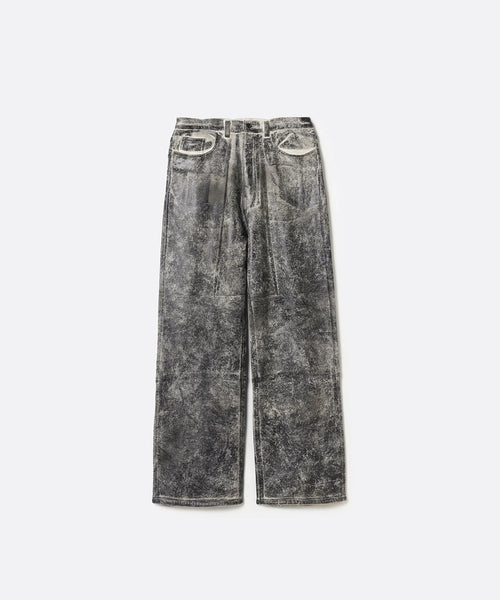 クラッキングコーティングを施した上質な裏毛スウェット生地を使用したワイドバギーパンツ。