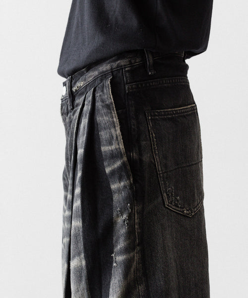 SUBLATIONS-サブレーションズの2TUCK WIDE DENIM PANTS "ENTASIS MK-Ⅱ"のUSED BLACK