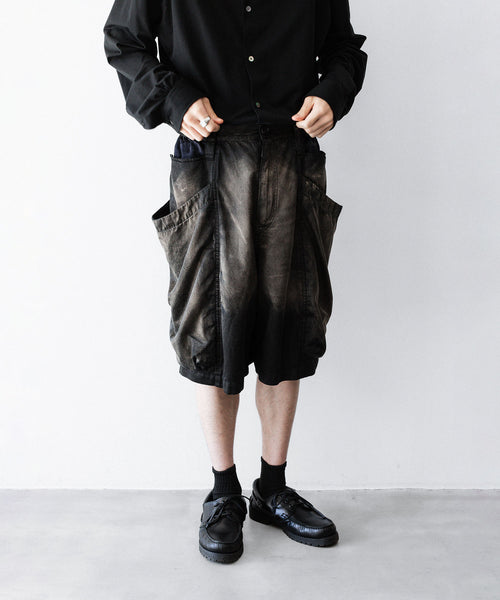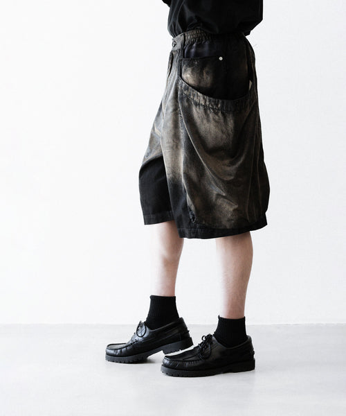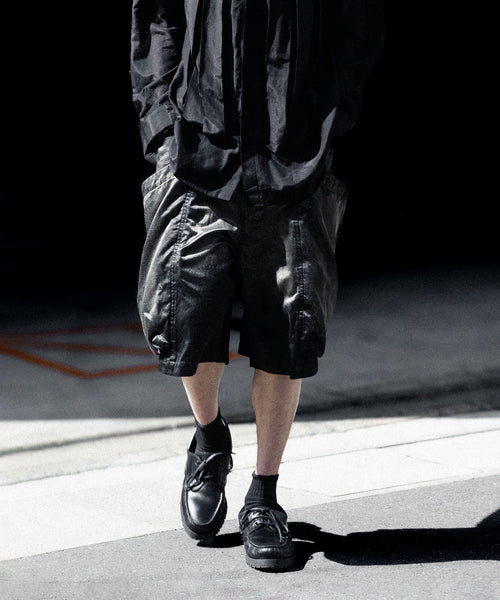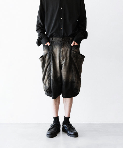 ガーデンパンツのような大ぶりなポケットをサイドにデザインしたイージー仕立てのカーゴショーツです。