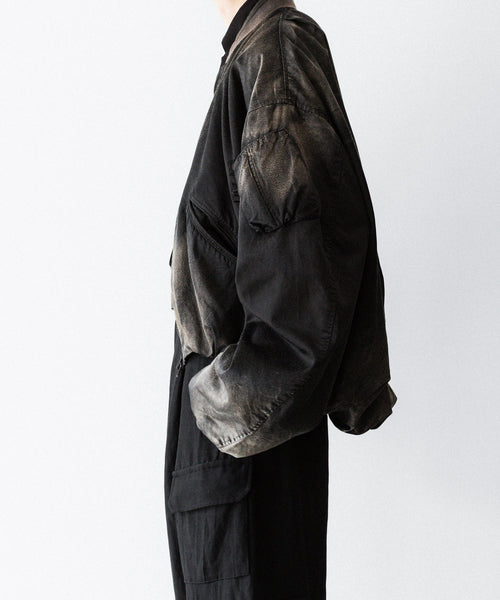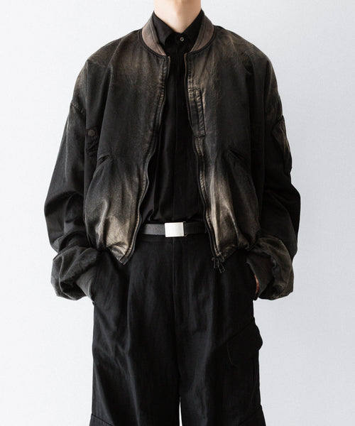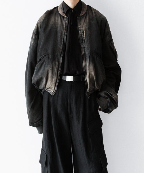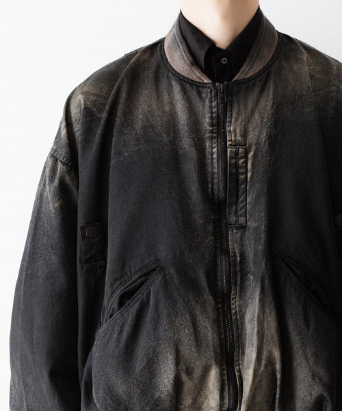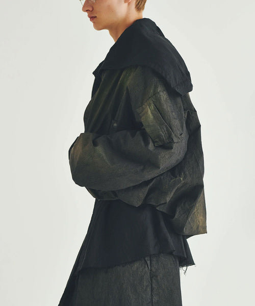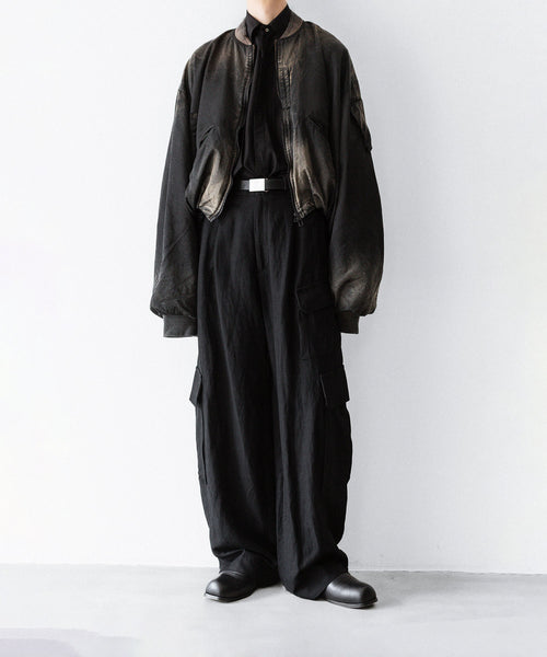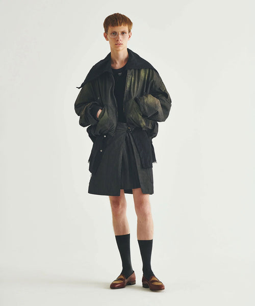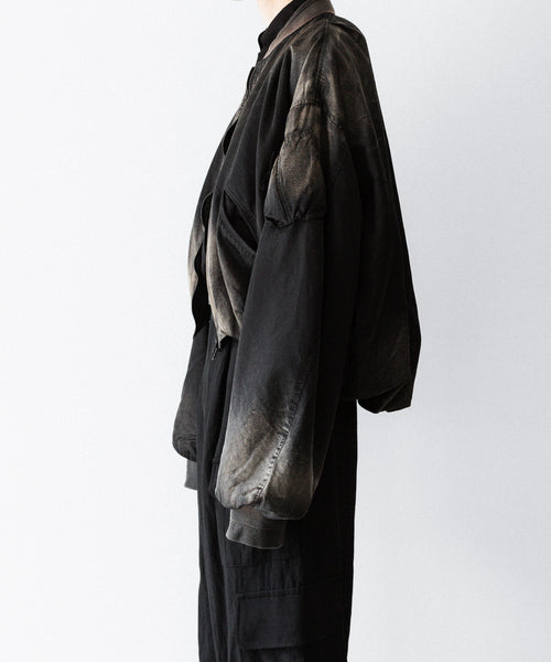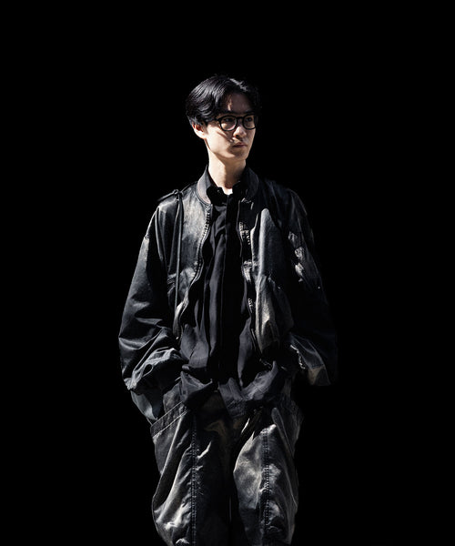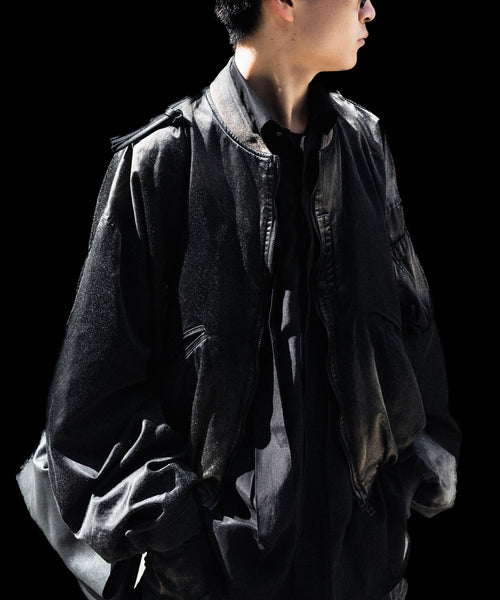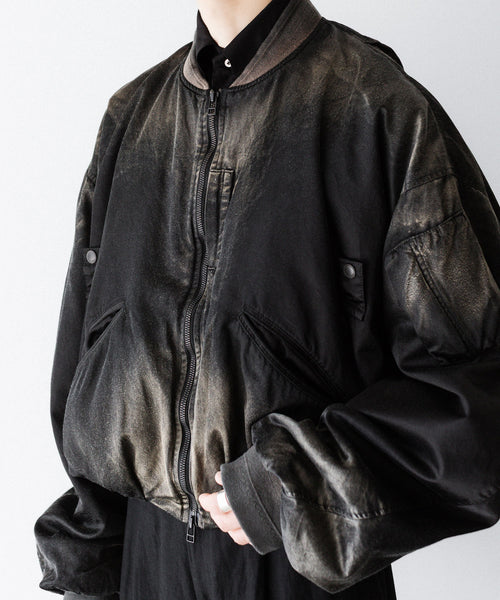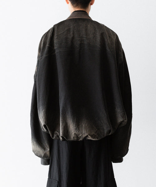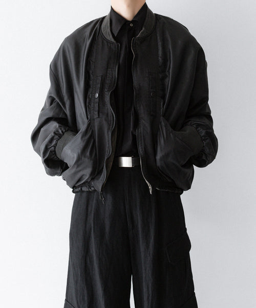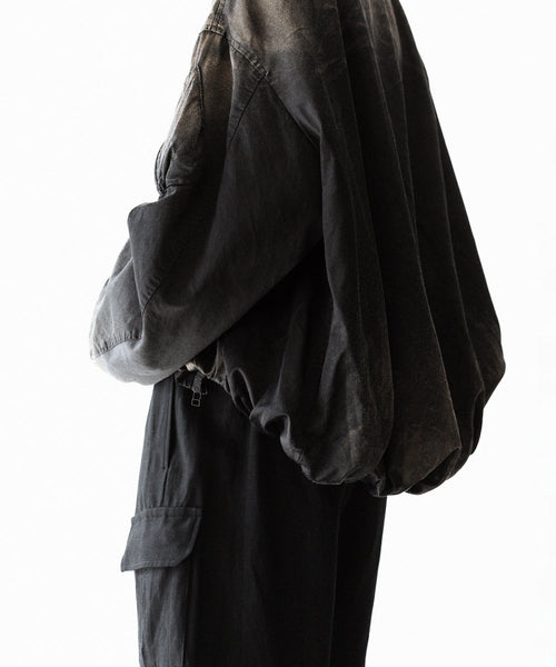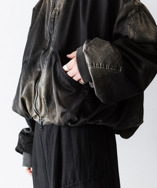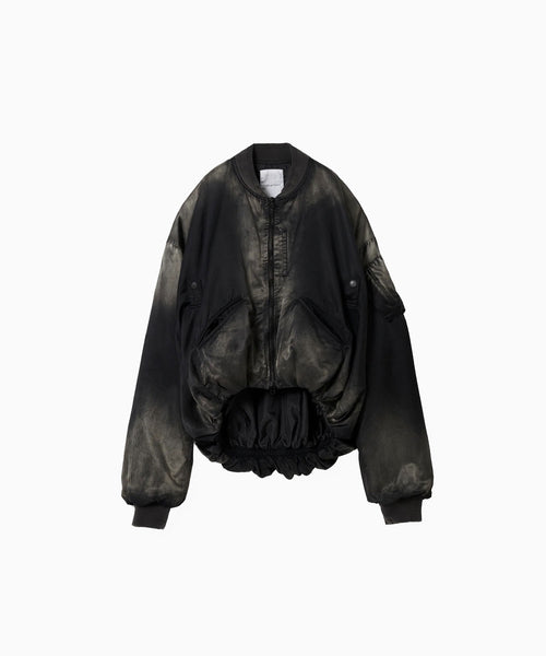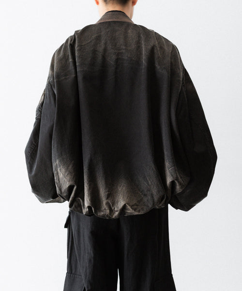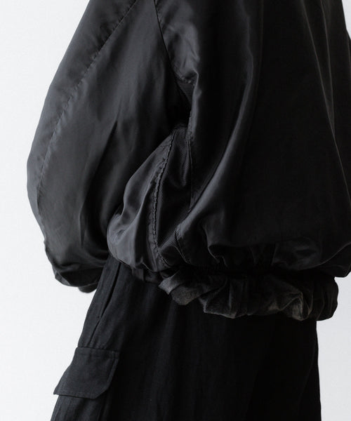 前後の着丈と、表地と裏地に極端な寸法差をつけて、独特なバルーンシルエットを描くようにパターンメイクしたMA-1タイプのブルゾンです。