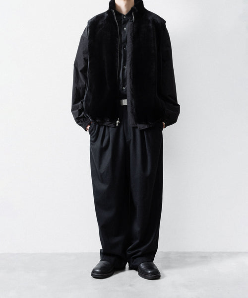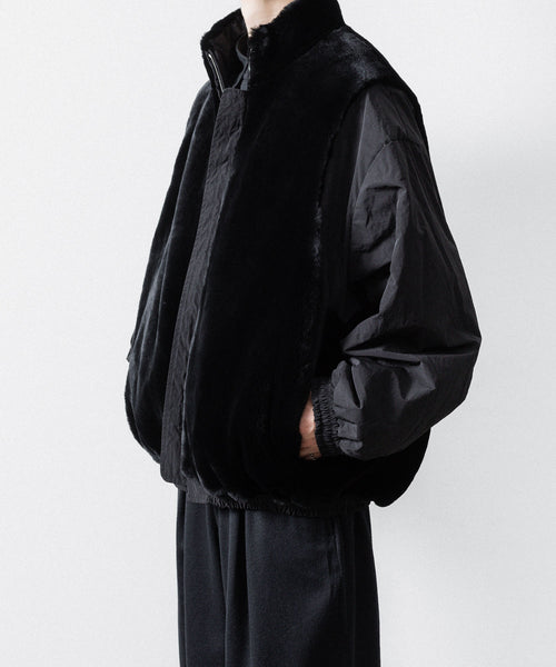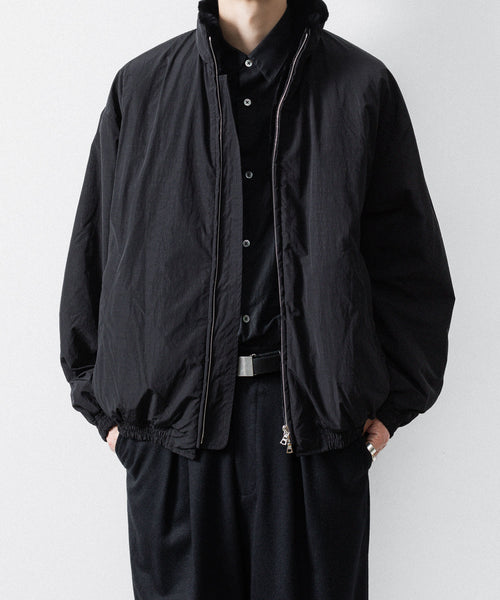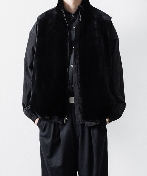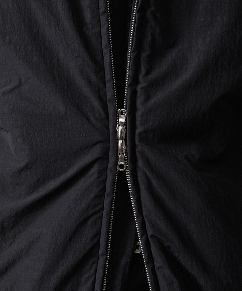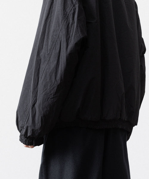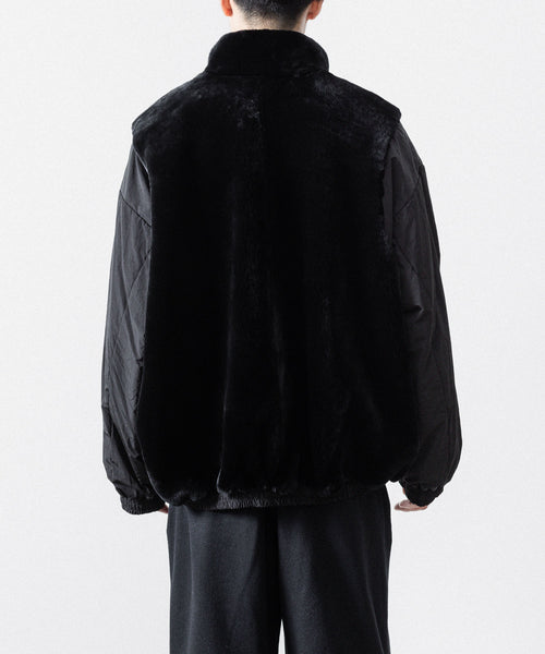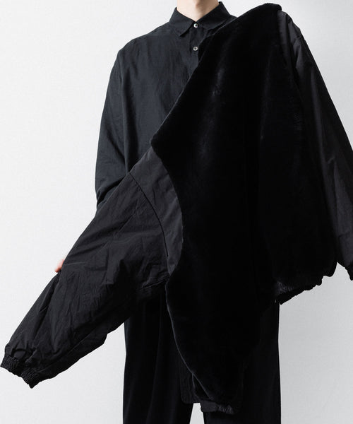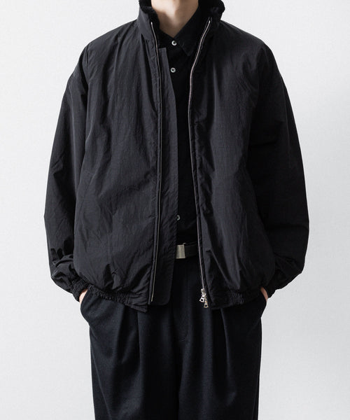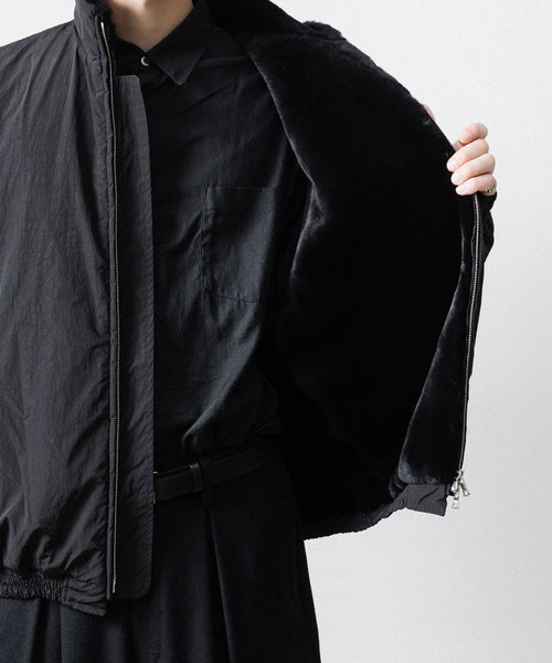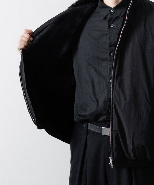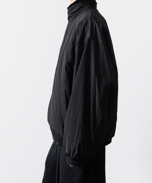洗い加工をかけ程良いしわ感を出したOLMETEX社PL,PA,COツイルを使用した中綿ジャケット。内側身頃にはオーストラリア産のムートンを使用。保温性と、襟元からのぞくムートンの毛足が特徴。リバーシブルで着用可能。