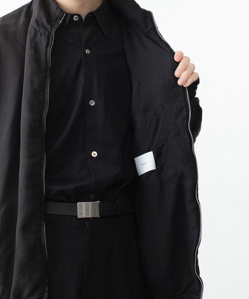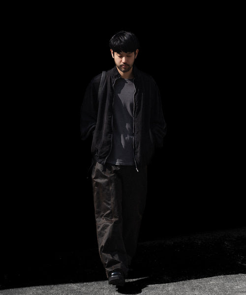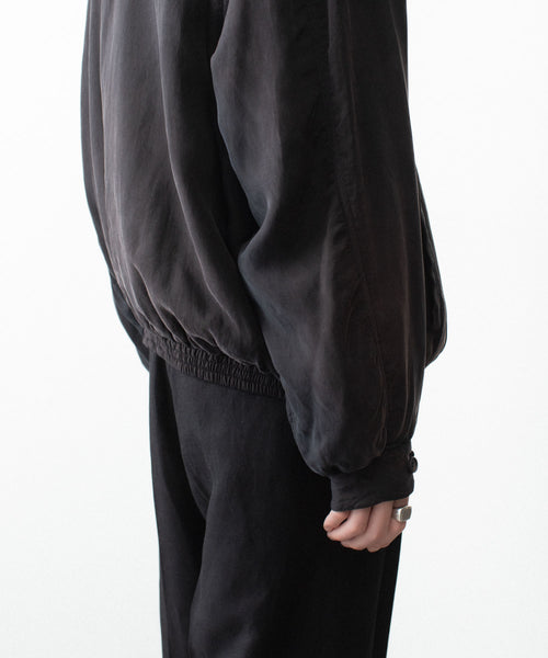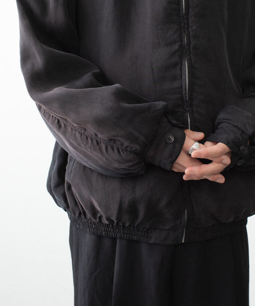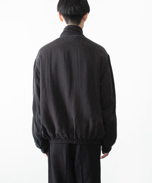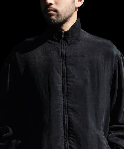 染色の前後2回にフィブリル加工を施しており、表面のヴィンテージ感、キュプラのシルキータッチと膨らみ感が特徴のツイル地を使用したジップジャケット。 内側は極薄の中綿仕様。ブリーチ、製品洗い、吹付けと加工を重ねていき着古したような奥行きのある表情に仕上げている。 キュプラのシルキーでさらっとした着心地も魅力。