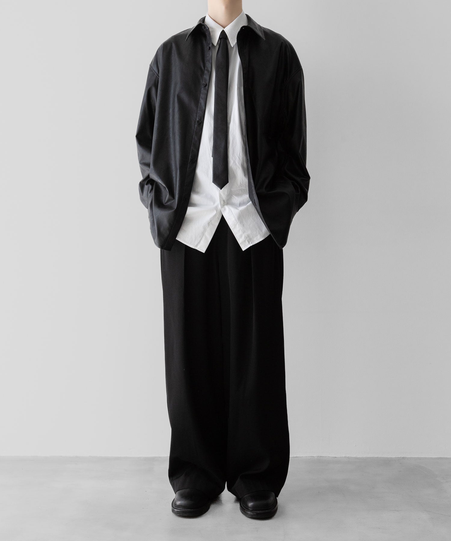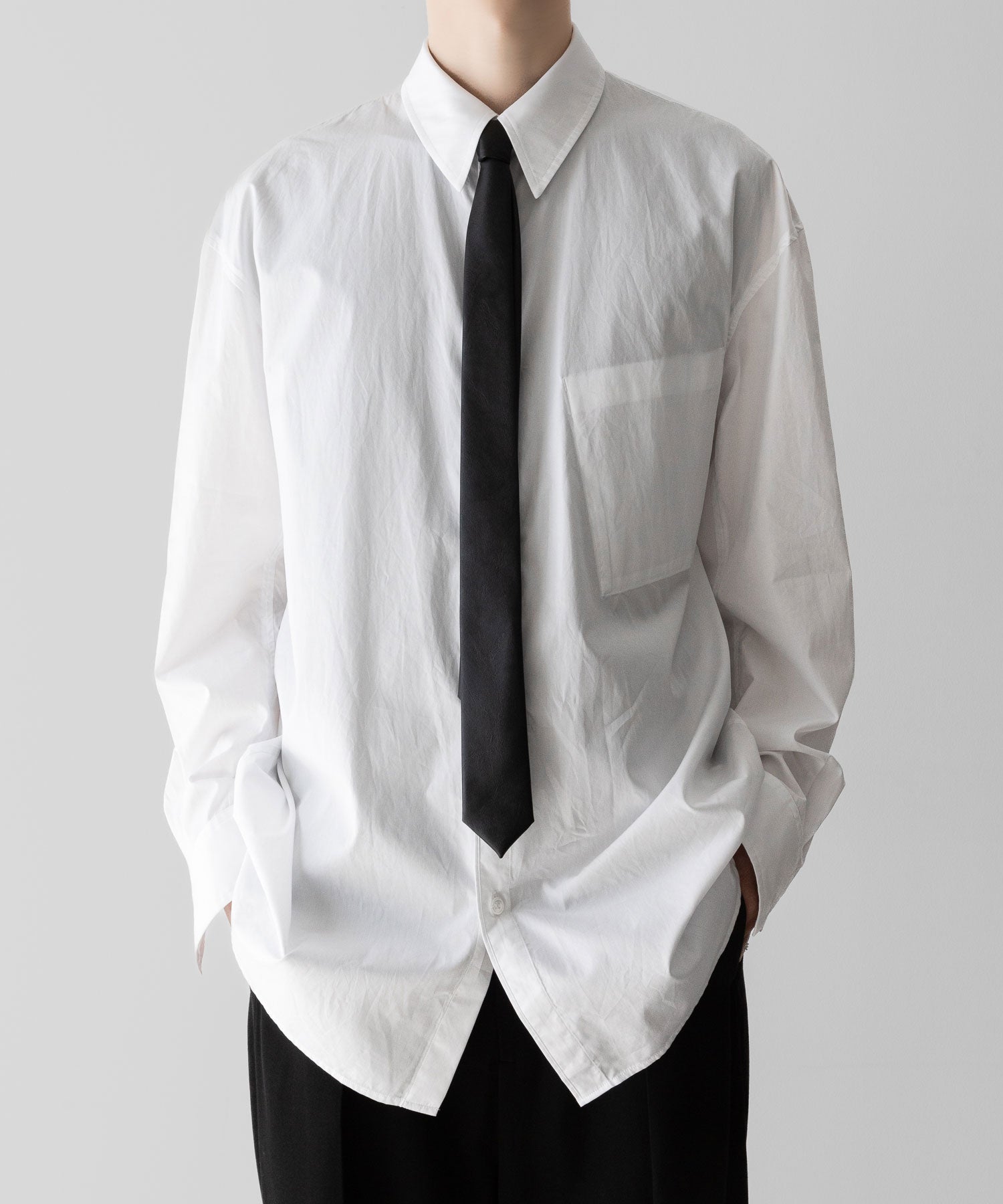 一般的なネクタイよりも長めに設定されており、モード感漂うアクセントに。