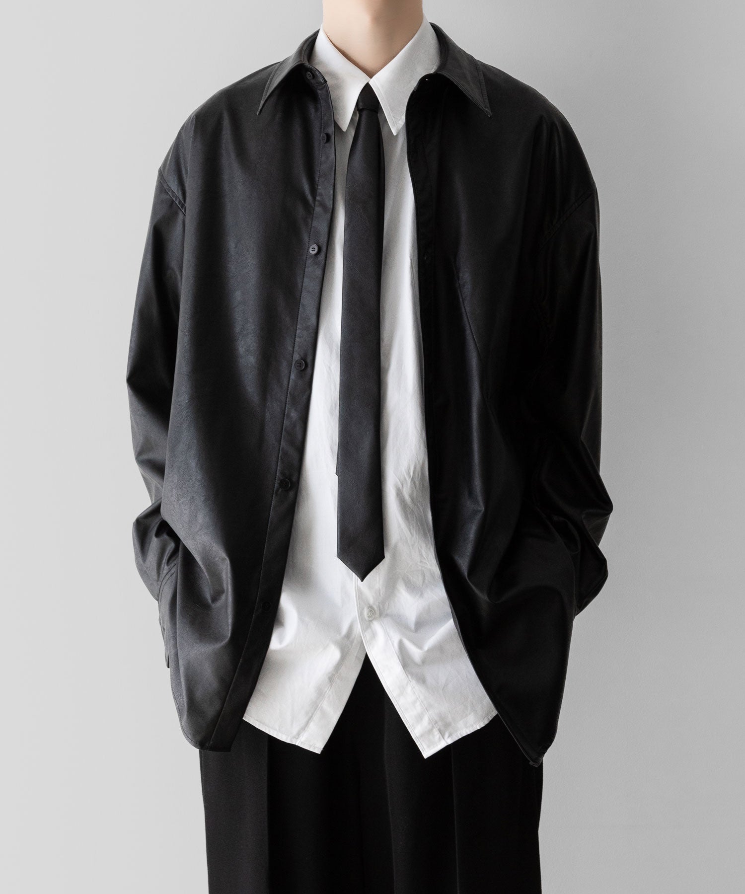 VEIN-ヴェインのSYNTHETIC LEATHER NARROW TIEのBLACK