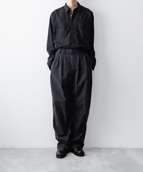 ウォッシュによるパッカリングの表情、ドライでコシの抜けた雰囲気ある素材感が特徴。