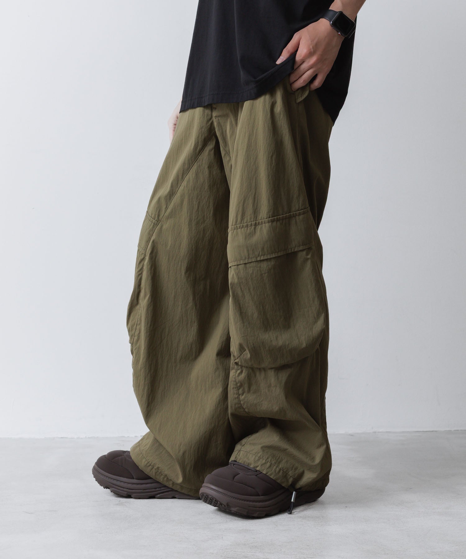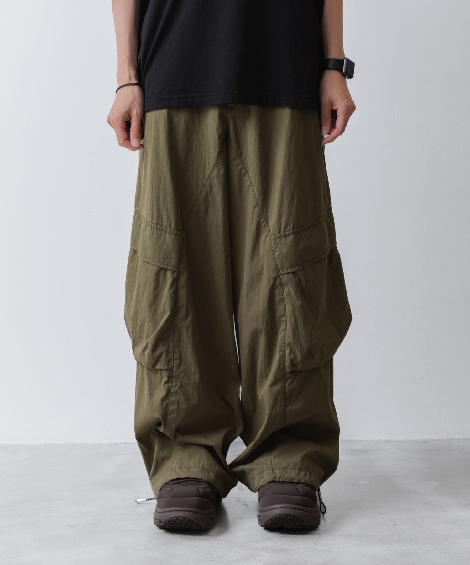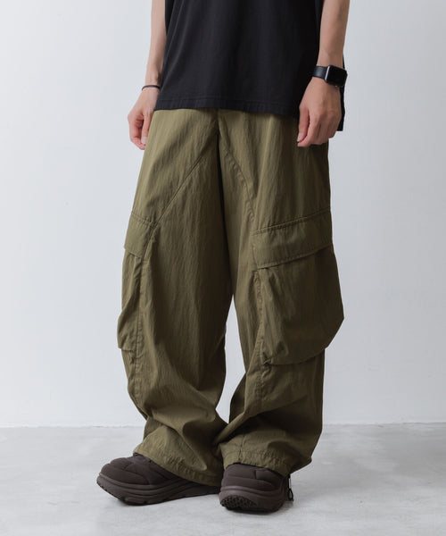 ボリューム感の強いワイドタイプのカーゴトラウザーズ。
