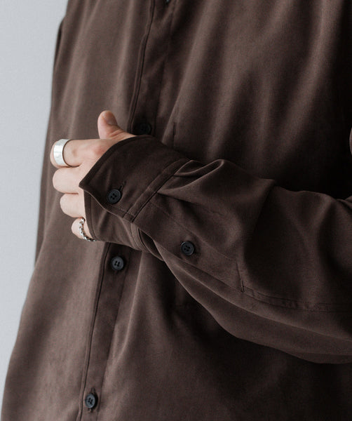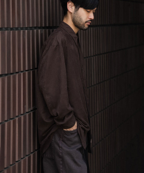 【 VEIN 】SYNTHETIC SUEDE LEATHER L/S SHIRT - BROWN