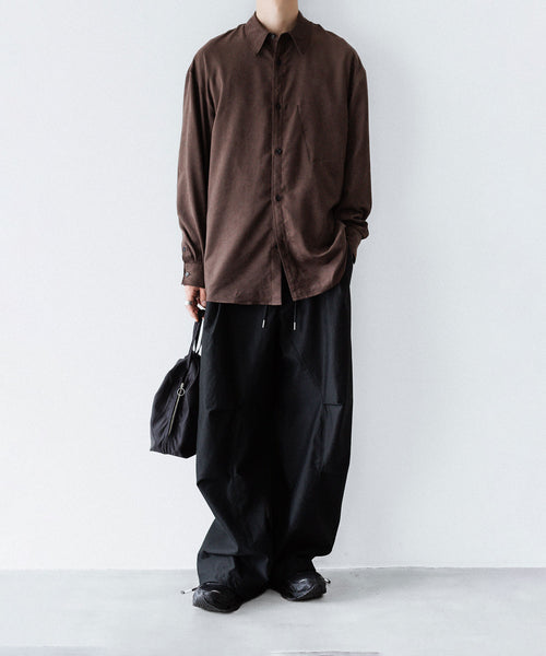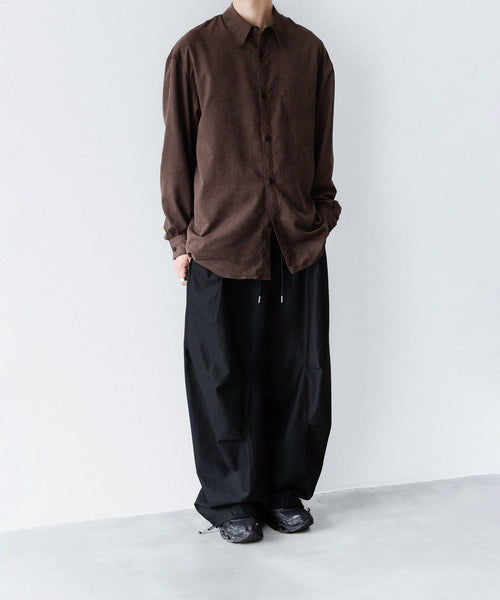 VEIN-ヴェインのSYNTHETIC SUEDE LEATHER L/S SHIRTのBROWN